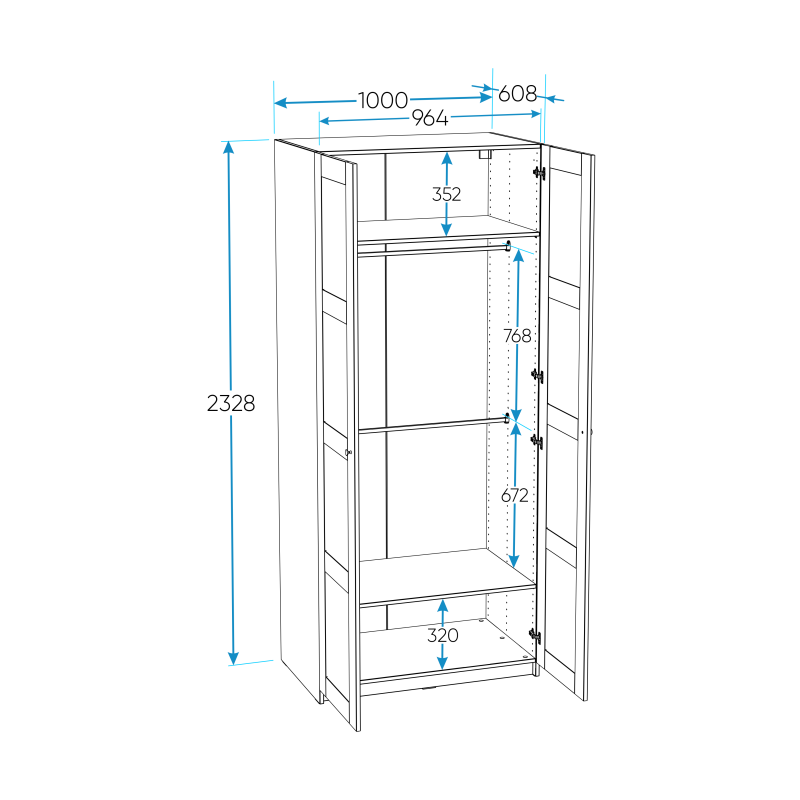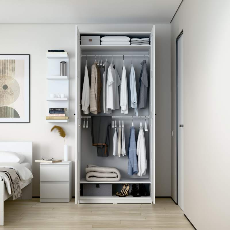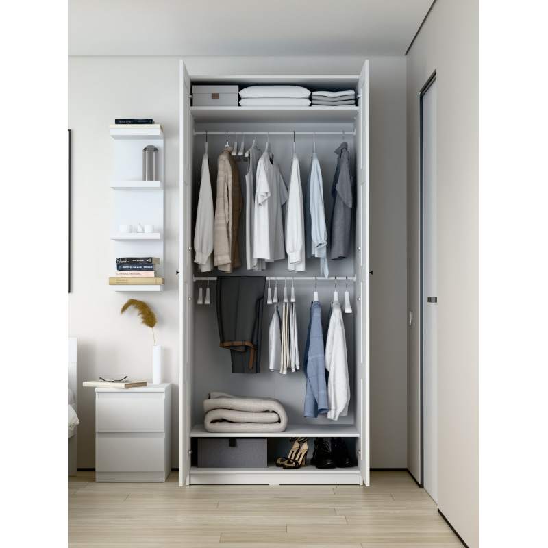 Шкаф МАКС для одежды двухдверный, 1000х610х2330, цвет Белый. Укомлектован двумя полками и штангой для вешалок. Изготовлен из кашированного ДСП толщиной 18 мм. Крепится к стене. Гарантийный срок для жилых помещений 24 месяца, для общественных помещений - 18 месяцев.