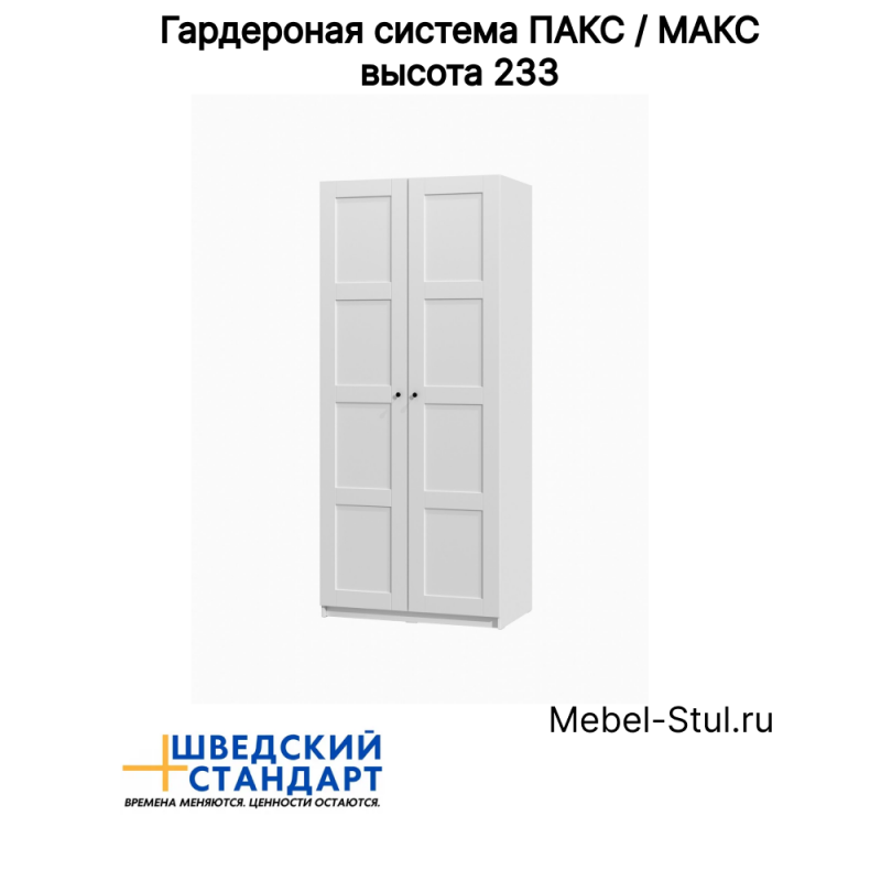 PAX / МАКС шкаф распашной двухстворчатый 100х61х233 белый, фасад 4 квадрата