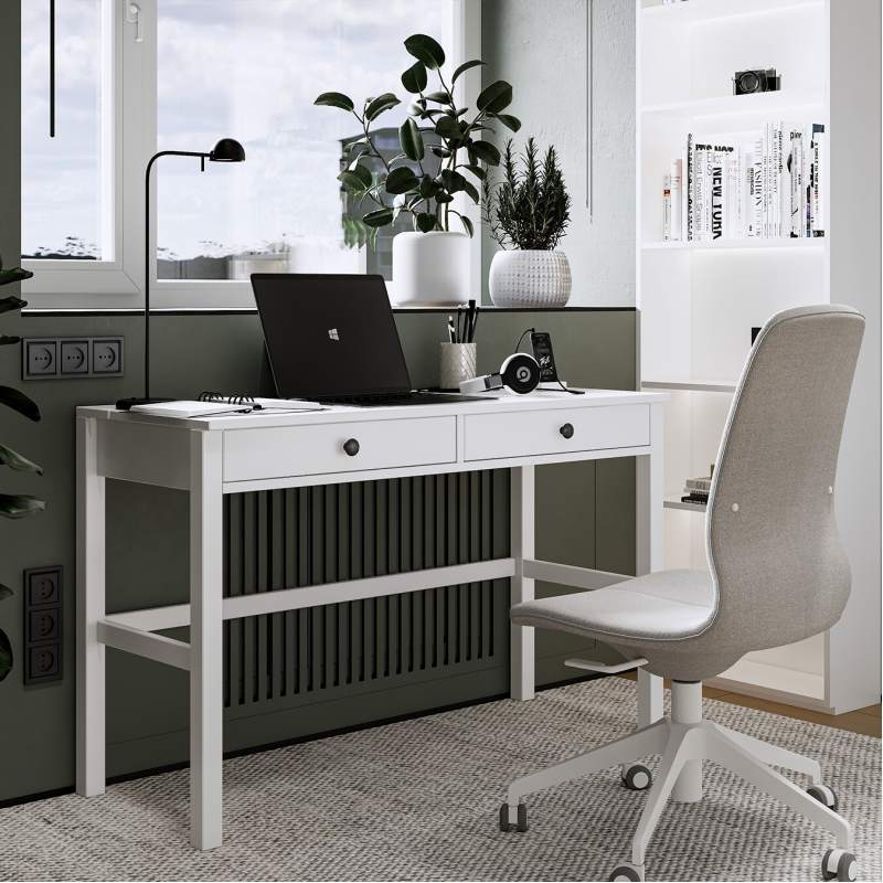 Благодаря лицевой отделке задней панели стол можно поставить не только у стены, но и в центре комнаты.