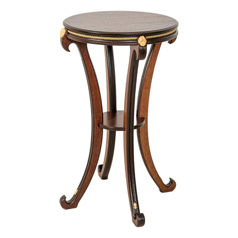 Устойчивая, высокая подставка будет идеальным местом для объёмного горшка с цветами или домашнего телефона. На дополнительной полочке поместятся различные малочи.