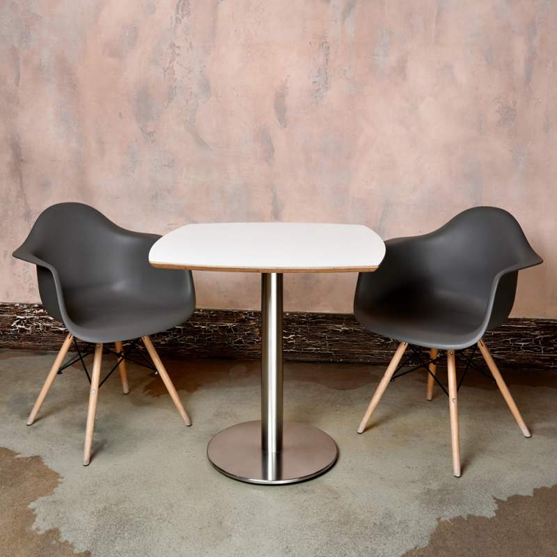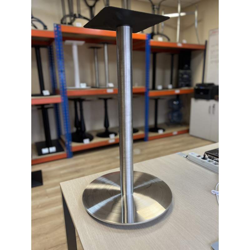 Круглое подстолье 4105 из нержавеющей стали. Эти подстолья часто можно встретить на фудкортах торговых центров. Нержавеющая сталь имеет эффект сатинирования, т.е. является не глянцевой на 100%, как зеркало, а слегка матовой. Зимой это дает преимущество - грязная обувь не оставляет столь заметные следы, как на хромированных подстольях.Посмотрите подстолье-компаньон для двойных столов: https://zip-mebel.ru/product/podstole-4116/