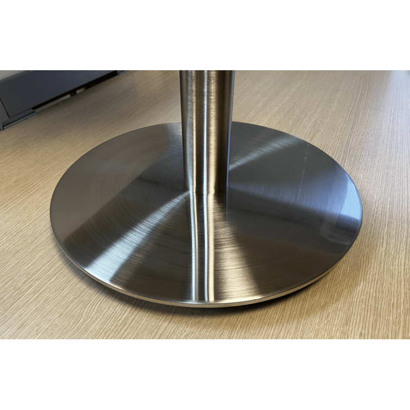 В нашем ассортимент 3 круглых подстолья из нержавеющей стали, эта модель 4106 - средняя из них, самая распространенная, имеет размер основания д450 мм.Комплектуется регулировчными ножками в основании, как и все эти модели, имеет утяжелитель из МЕТАЛЛА, а не из пластика, поэтому вся тяжесть подстолья сосредоточена в самом низу, что делает его максимально устойчивым.Модель имеет не гальваничесоке покрытие quot;хромquot;, а имеет поверхность из полноценной нержавеющей стали с холодным матовым блеском. Выглядит, конечно, очень стильно, не сравнить с дешевым хромом. Разумеется, бонусом получите долговечность.