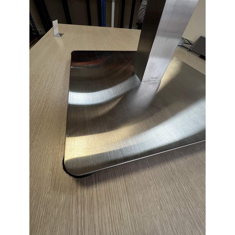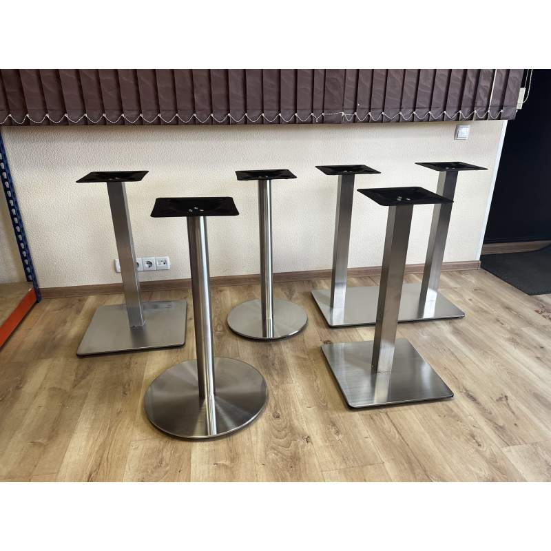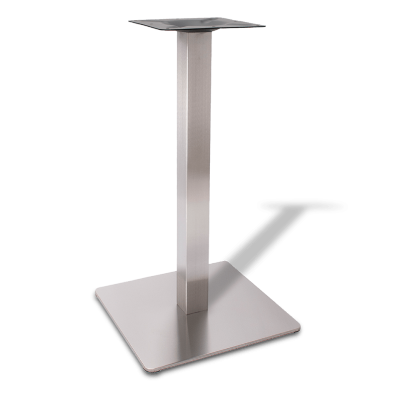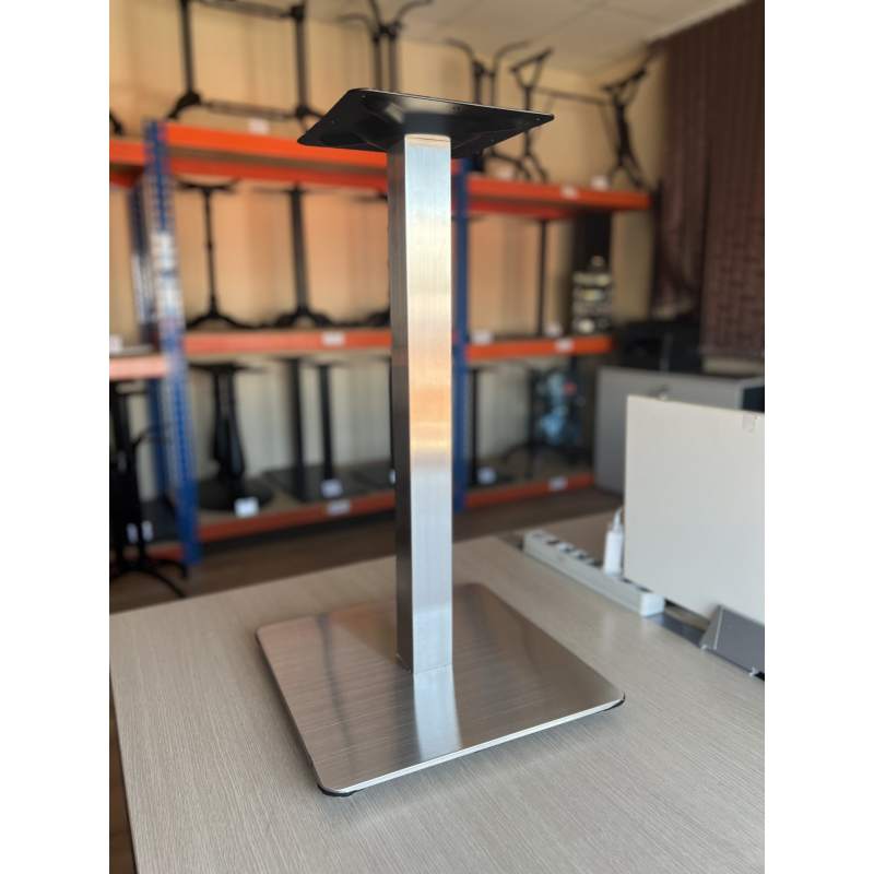 Подстолье 4110 из нержавеющей стали с квадратным основанием. В отличие от хромированных подстолий на нержавейке не заметны разводы и пятна. Преимущество станет явным зимой, когда тающий снег от обуви гостей вашего ресторана будет оставаться на основании подстолья. Поверхность металла часто называют quot;сатинированнойquot;, она имеет не зеркальный, а именно матовый металлический блеск, что выглядит намного благороднее.Есть более мощный вариант этого подстолья с увеличенным основанием: подстолье 4111