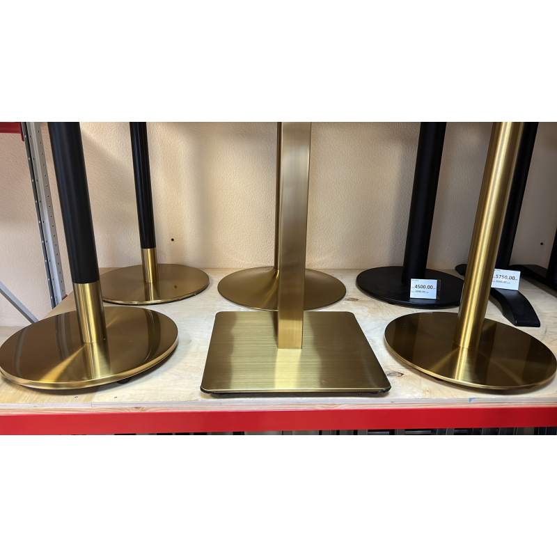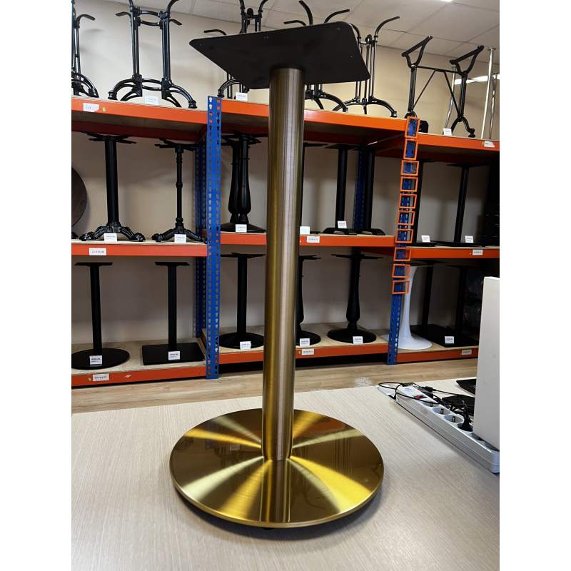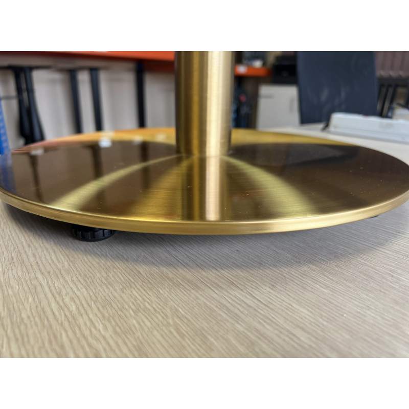 Золотое подстолье 4205 с основанием из нержавеющей стали с покрытием - нитрид титана (данное покрытие применяют при золочении церковных куполов).Присмотритесь внимательно к изображению основания, не путайте с покраской под золото. Это именно нержавеющая сталь с металлическим блеском и quot;сатинированнымquot; рисунком самого металла.В основание подстолья интегрирован стальной утяжелитель для придания столу устойчивости.Также в линейке есть это же подстолье, но с квадратным основанием подстолье 4210