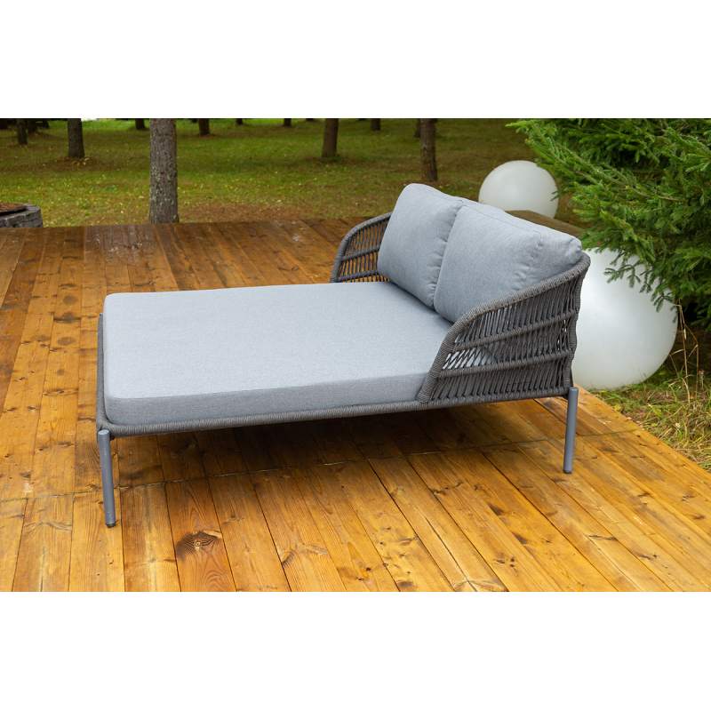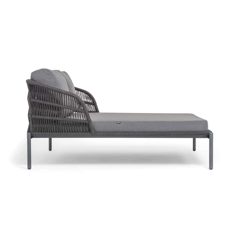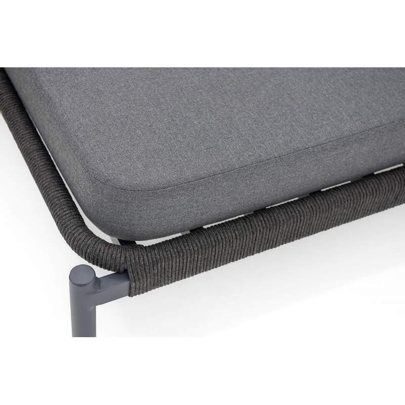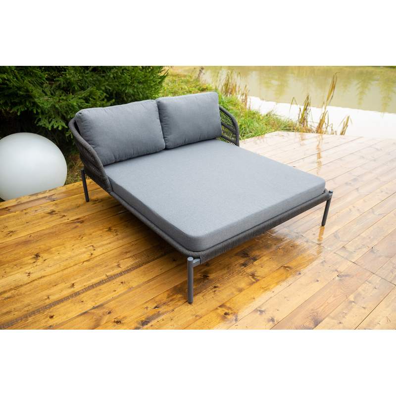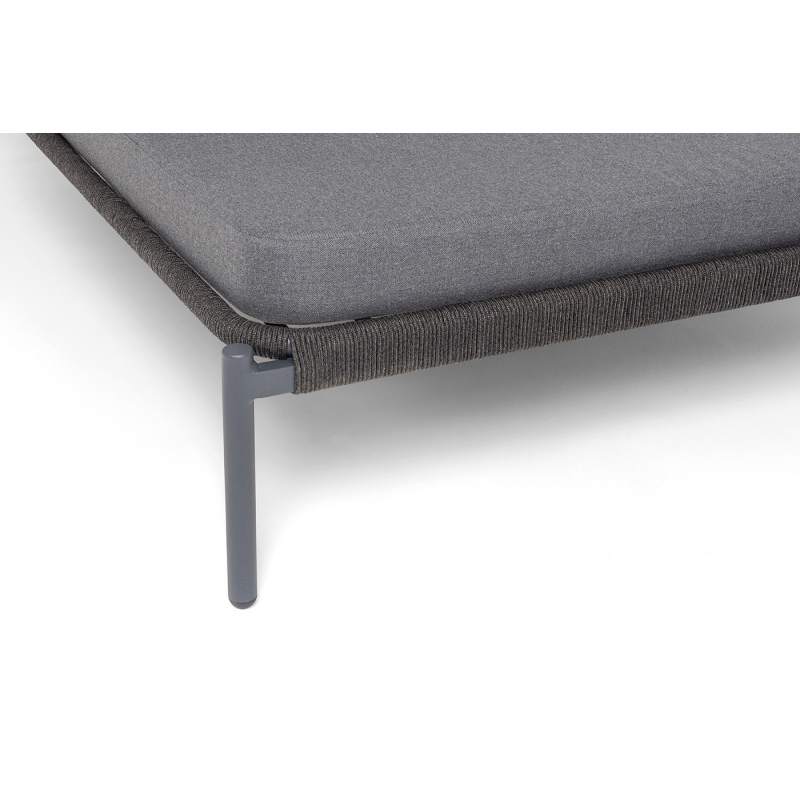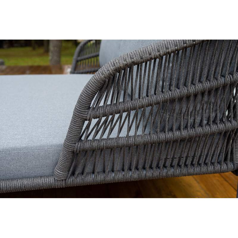 "Позитано" лежак плетеный из роупа, каркас алюминий темно-серый (RAL7024) муар, роуп темно-серый круглый, ткань темно-серая 027