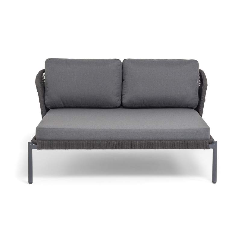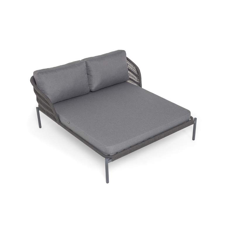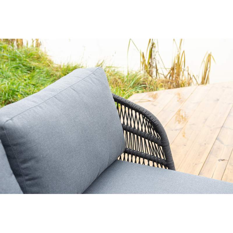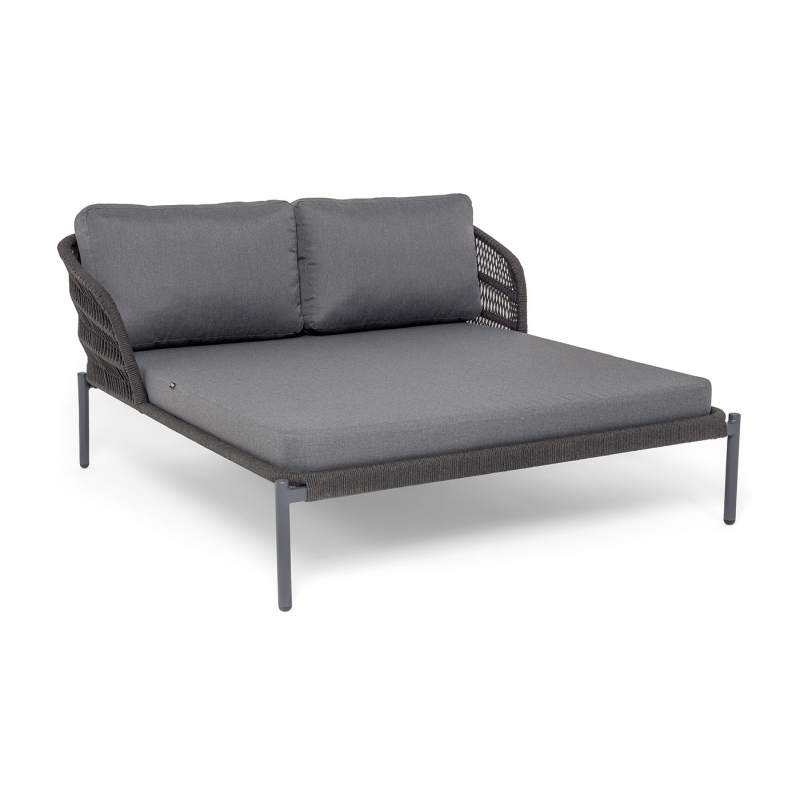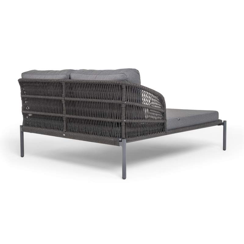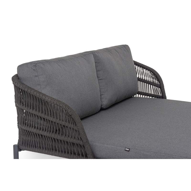 "Позитано" лежак плетеный из роупа, каркас алюминий темно-серый (RAL7024) муар, роуп темно-серый круглый, ткань темно-серая 027