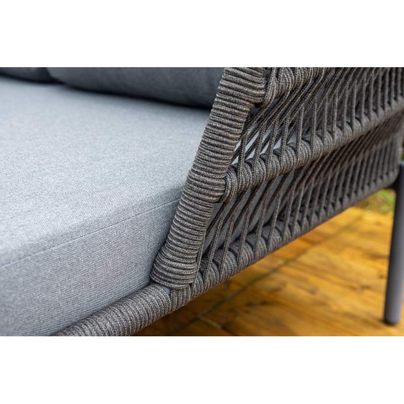 Оплетка боковин выполнена вручную из роупа — эластичных синтетических лент на основе высокопрочных полиэфирных волокон. Темно‑серый оттенок оплетки гармонично сочетается с каркасом, подчеркивая лаконичность дизайна.