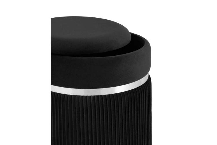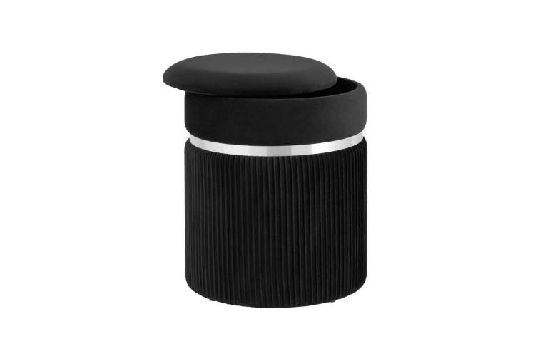Пуф Миранда с ящиком серебро велюр черный с декоративным серебряным ободком