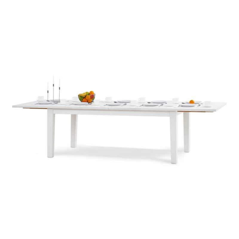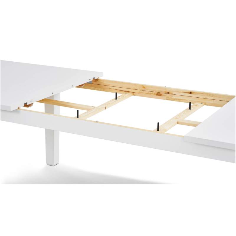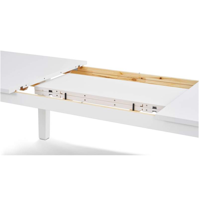 Всего одного человека достаточно, чтобы легко и быстро разложить стол и установить две дополнительные секции по центру столешницы перед приходом гостей, а после убрать обратно.