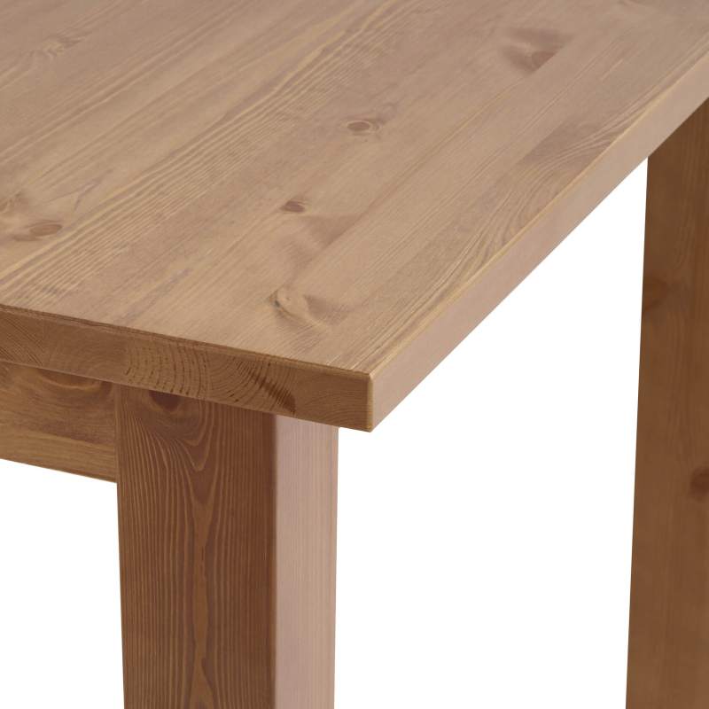 Материал столешницы и подстолья — это прочный и долговечный массив сосны. Матовое покрытие выполнено с использованием красителей на водной основе и лака на основе акриловых смол с УФ-отверждением. Оно подчеркивает природную красоту древесины и защищает её от внешних воздействий.