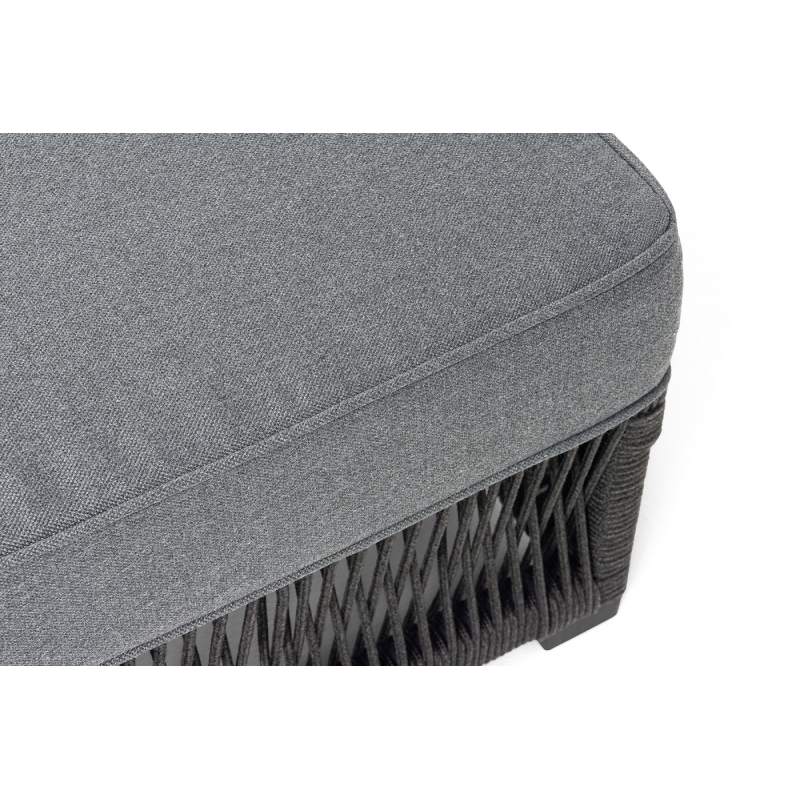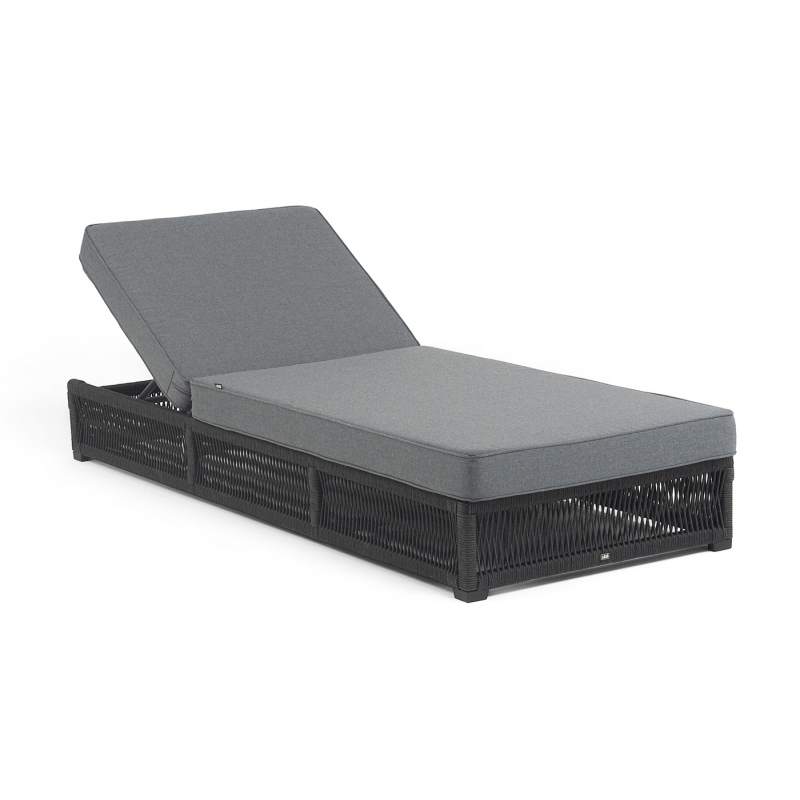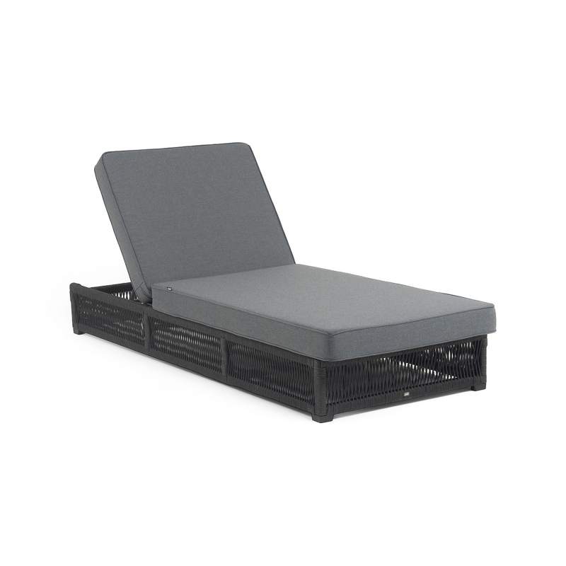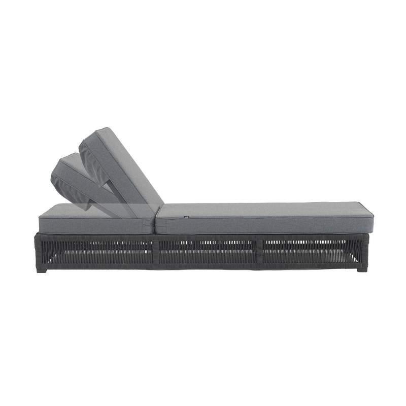"Ривьера" шезлонг плетеный из роупа, каркас алюминий темно-серый (RAL7024) муар, роуп темно-серый круглый, ткань темно-серая 027