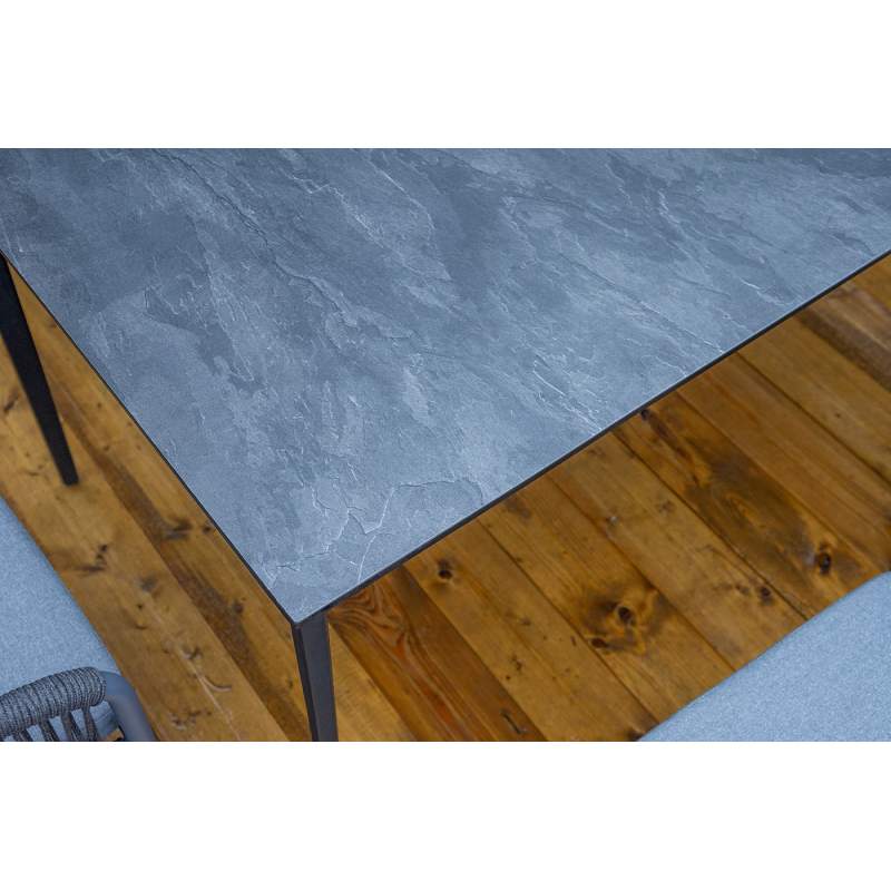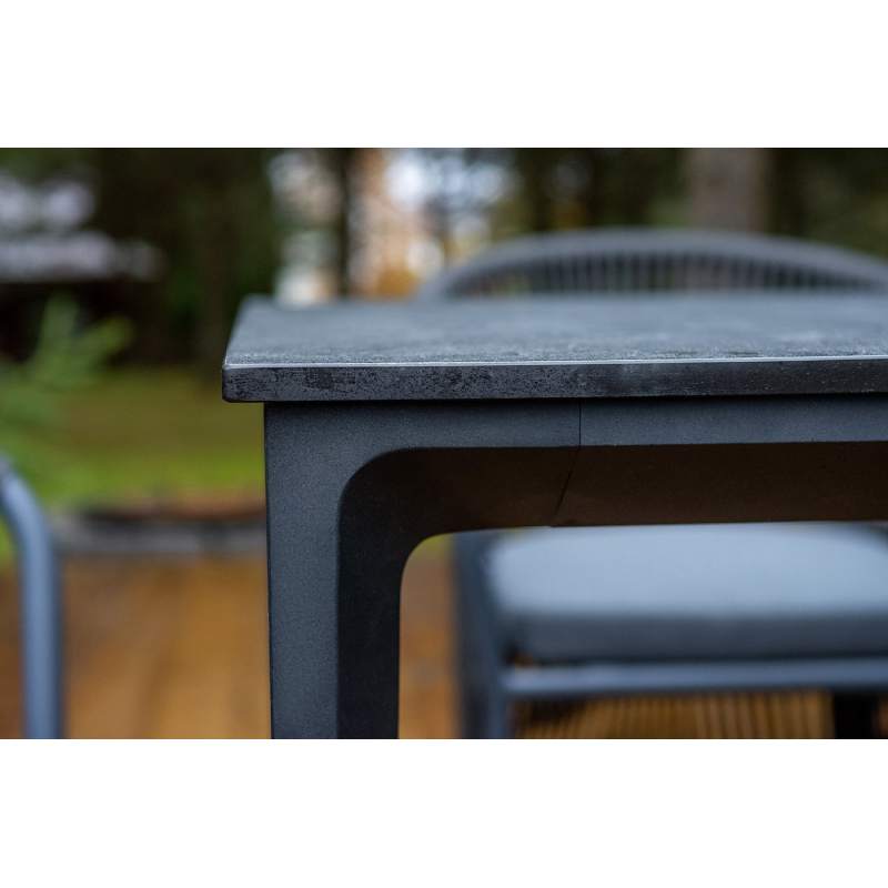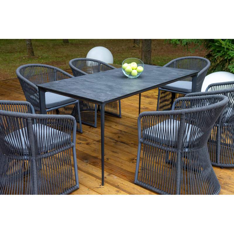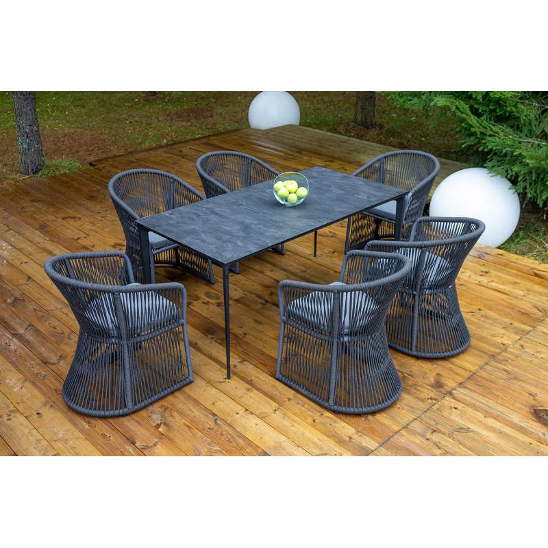 "Романо" стул плетеный из роупа, каркас алюминий темно-серый (RAL7024) муар, роуп темно-серый круглы 6шт. 580Х590Х780, "Малага" обеденный стол из HPL 160х80см, цвет "серый гранит", каркас черный 1шт. 1 600Х800Х750,
