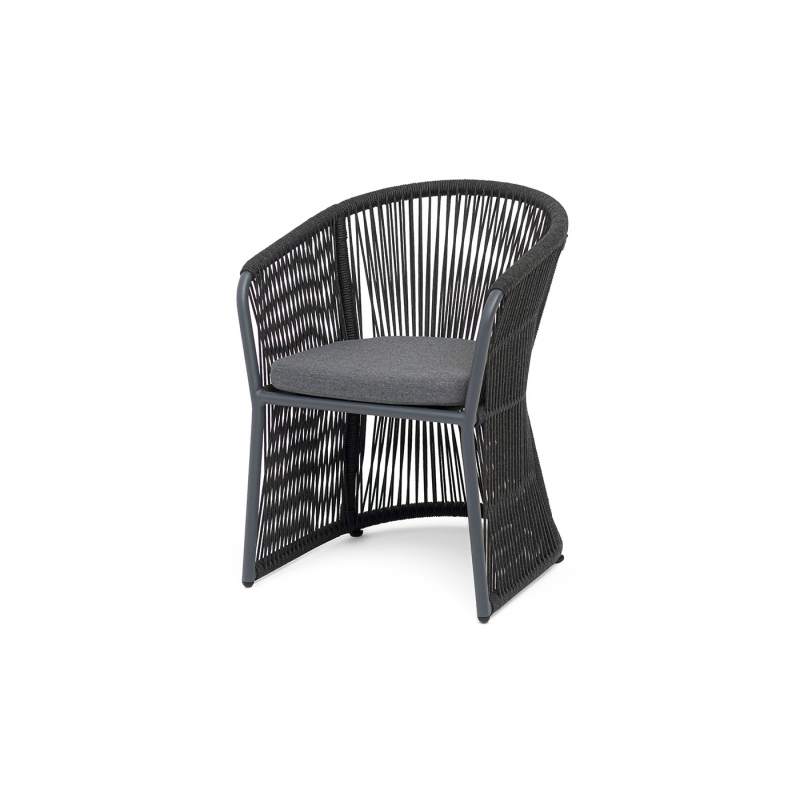 "Романо" стул плетеный из роупа, каркас алюминий темно-серый (RAL7024) муар, роуп темно-серый круглый, ткань темно-серая 027