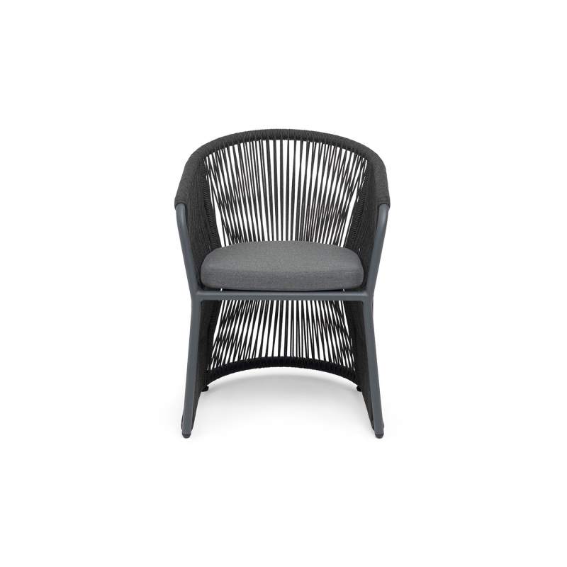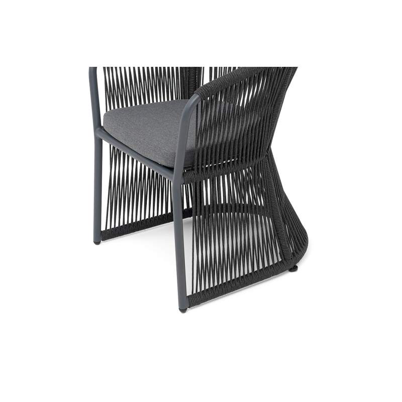 "Романо" стул плетеный из роупа, каркас алюминий темно-серый (RAL7024) муар, роуп темно-серый круглый, ткань темно-серая 027