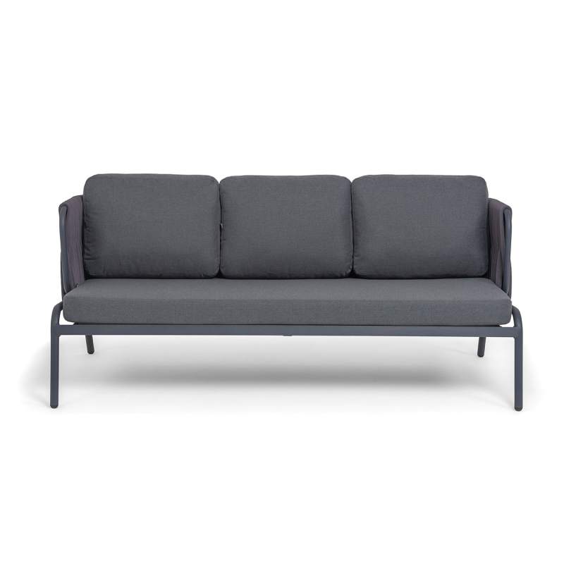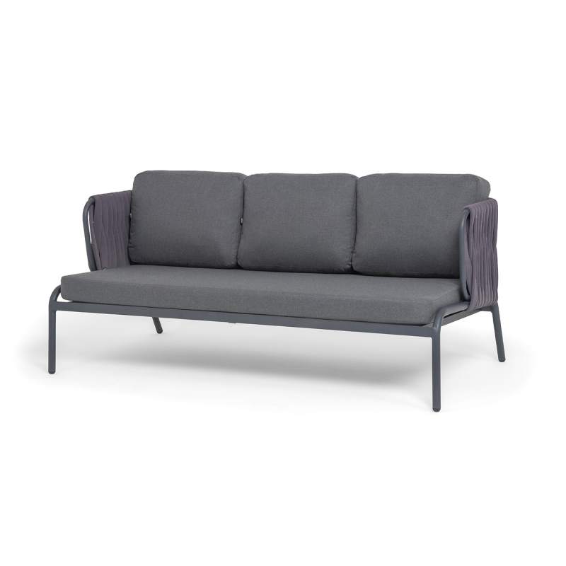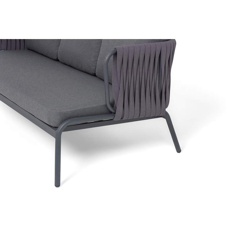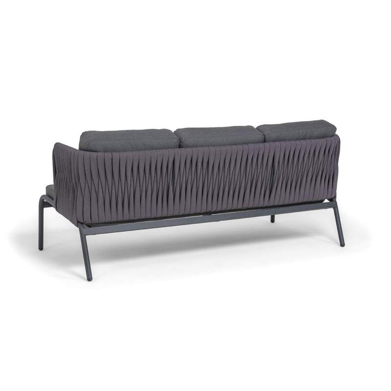 "Ронда" диван 3-местный плетеный из роупа, каркас алюминий темно-серый (RAL7024) муар, роуп серый 40 мм tex, ткань темно-серая 027