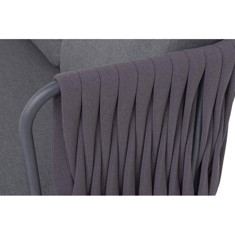 Плетение: боковины и спинка вручную оплетены роупом — эластичными синтетическими лентами (40 мм) из высокопрочных полиэфирных волокон. Цвет оплетки — серый.