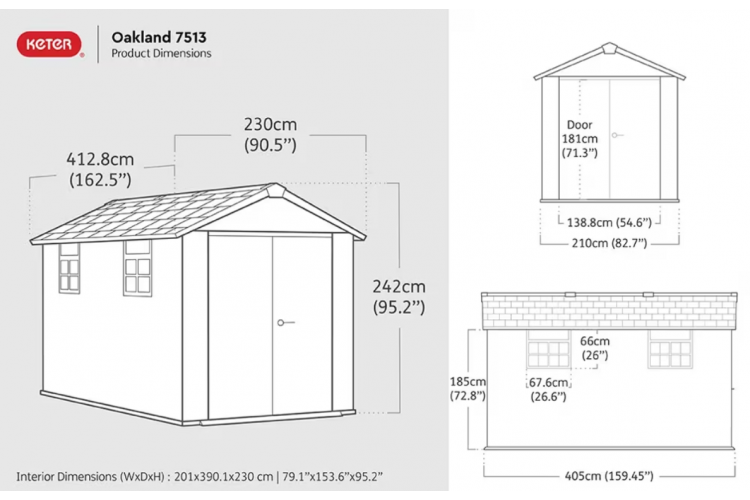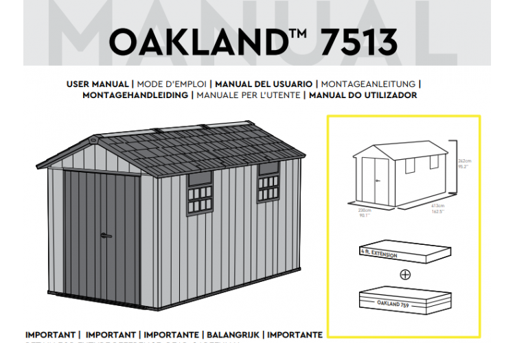 Новый домик Oakland 7513 обеспечивает не только высочайшую прочность и долговечность, но и все остальные, хорошо известные достоинства линии Oakland и пластика Duo Tech. Специальный комплект Oakland Extension Kit для применения с избранными базовыми домиками Oakland гарантирует необходимое дополнительное пространство и место для хранения самого разного садового инвентаря и принадлежностей. Инновационность и продуманная конструкция обеспечат все, что предлагает линия Oakland, и гораздо больше.