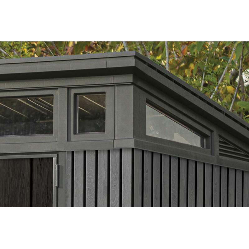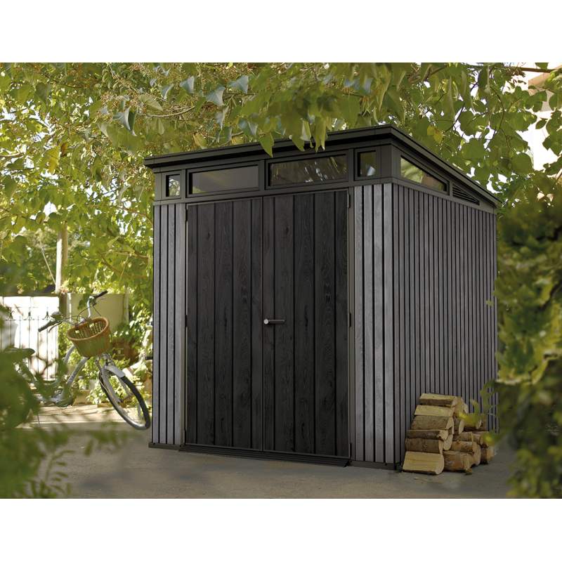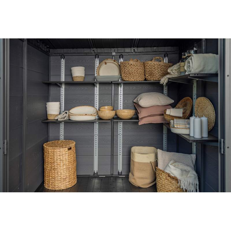 Сарай - PENT 7X7 современен во всех отношениях. С наклонной крышей над оконной группой, он может похвастаться элегантным и привлекающим внимание дизайном. Внутри может быть расположено все: от рабочей зоны для обустройства дома до спортивного инвентаря на оборудования. PENT 7X7 изготовлен по уникальной технологии DECOCOAT, которая не только устойчива к погодным условиям, но и дополняет внешний вид и соответствует трендам дизайна открытого пространства лучше, чем любая другая технология. Технология DECOCOAT «Like wood, but better» (“Как дерево, только лучше») сочетает в себе преимущества смолистых веществ с эстетичной отделкой. Сарай, в высшей степени современный и прочный, полностью устойчив к атмосферным воздействиям и не требует дополнительного технического обслуживания – материал изделия не ржавеет, не гниет и не расслаивается.