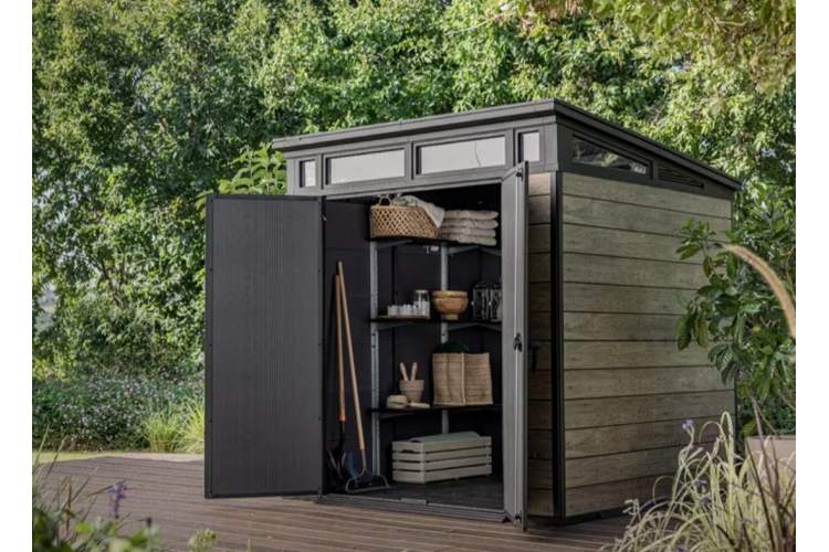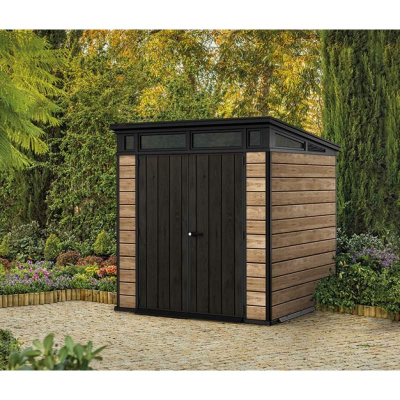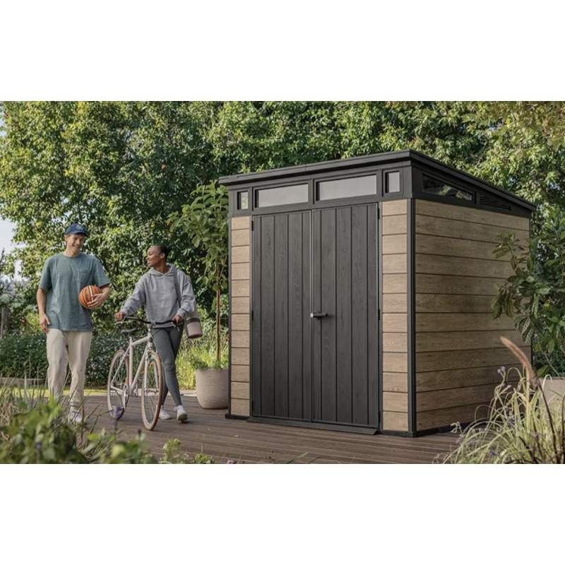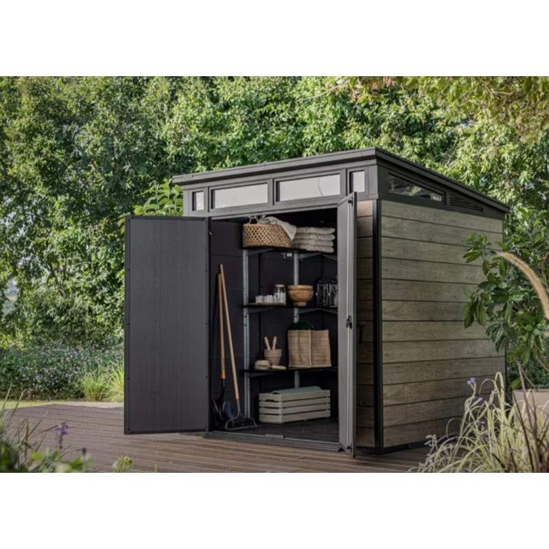 Сарай - PENT 7X7 современен во всех отношениях. С наклонной крышей над оконной группой, он может похвастаться элегантным и привлекающим внимание дизайном. Внутри может быть расположено все: от рабочей зоны для обустройства дома до спортивного инвентаря на оборудования. PENT 7X7 изготовлен по уникальной технологии DECOCOAT, которая не только устойчива к погодным условиям, но и дополняет внешний вид и соответствует трендам дизайна открытого пространства лучше, чем любая другая технология. Технология DECOCOAT «Like wood, but better» (“Как дерево, только лучше») сочетает в себе преимущества смолистых веществ с эстетичной отделкой. Сарай, в высшей степени современный и прочный, полностью устойчив к атмосферным воздействиям и не требует дополнительного технического обслуживания – материал изделия не ржавеет, не гниет и не расслаивается.