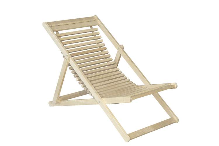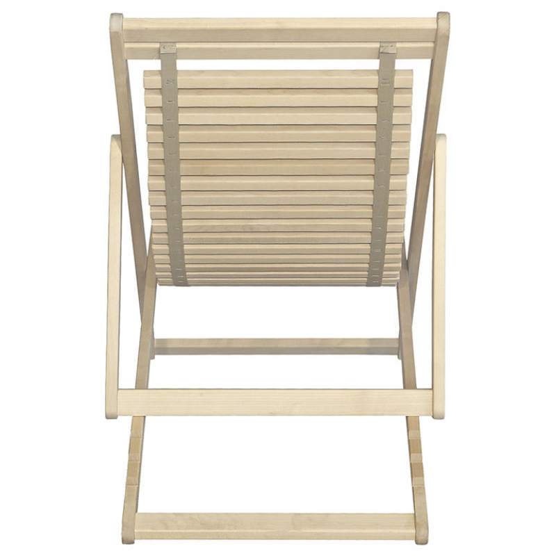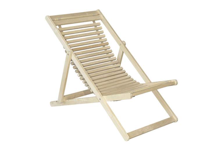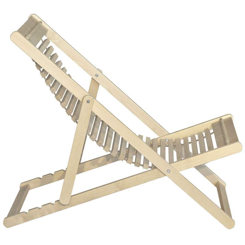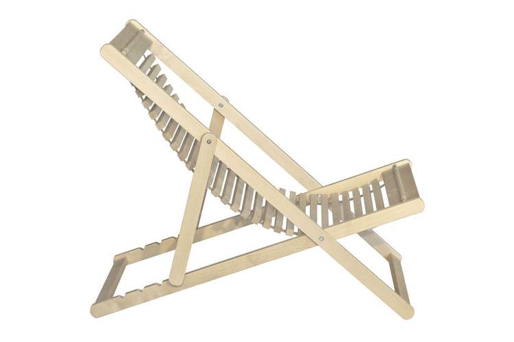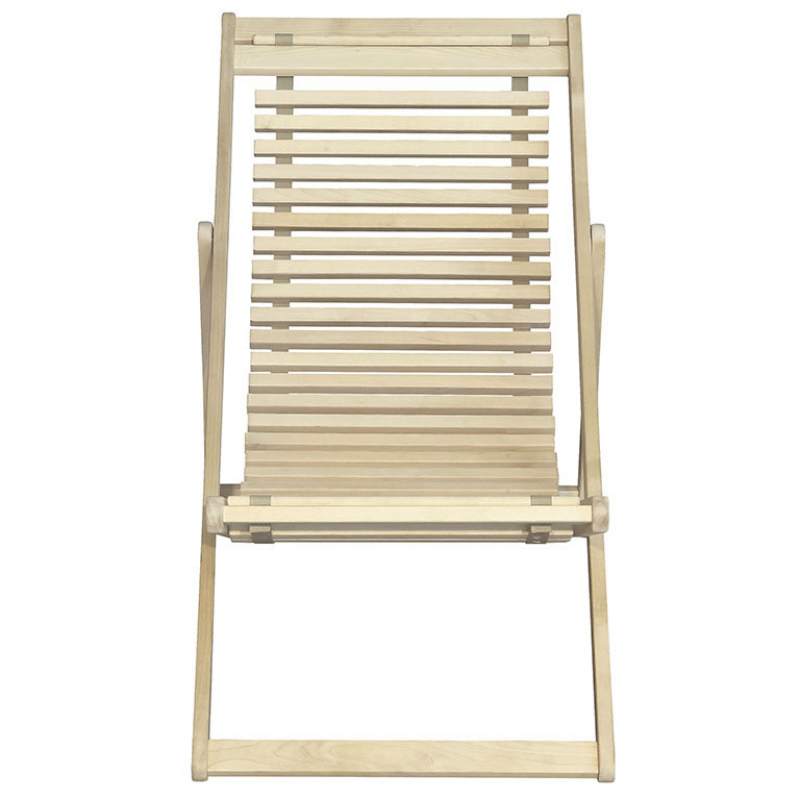 Простой экономичный шезлонг для отдыха на даче, в загородном доме, на террасе, балконе. Легко складывается, не занимает много места. Сиденье из ламелей шириной 22мм, прочно связанных между собой в своеобразный коврик, принимает форму сидящего. Есть возможность фиксировать наклон спинки в трех положениях. Эта модель отлично гармонирует с диваном, креслом, журнальным столиком серии Массив, образуя законченное оформленное место отдыха. Обратите внимание на то, что с кресел с глубокой низкой посадкой не всегда удобно подниматься пожилым людям. Каркас шезлонга не тонирован.