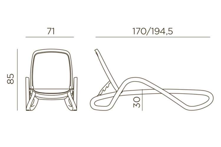 Преимущества шезлонгов Nardi Эргономичный и стильный дизайнБезопасность - отсутствие острых граней, прорезиненная антискользящая ножка