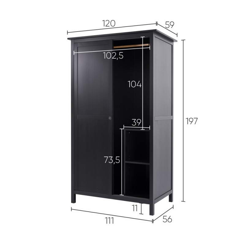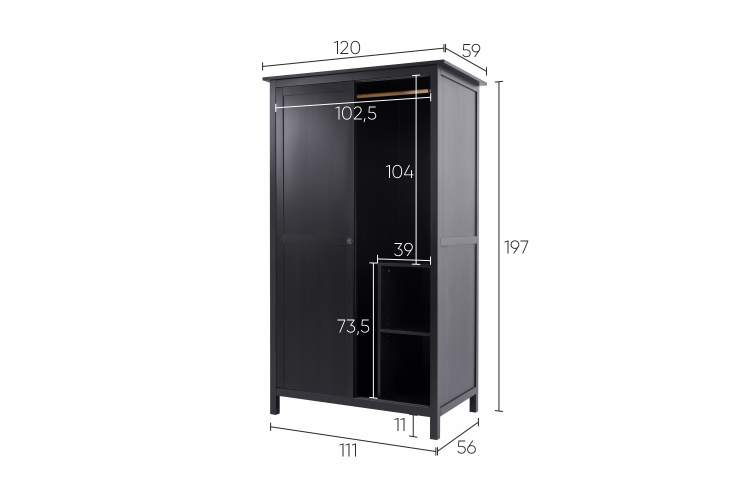 Шкаф-куппе Хемнэс Hemnes/Кымор, 120х197х59 см, ИКЕА, черный