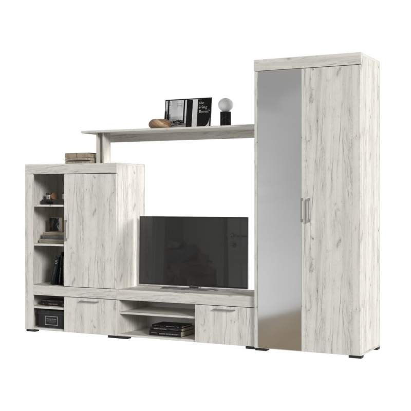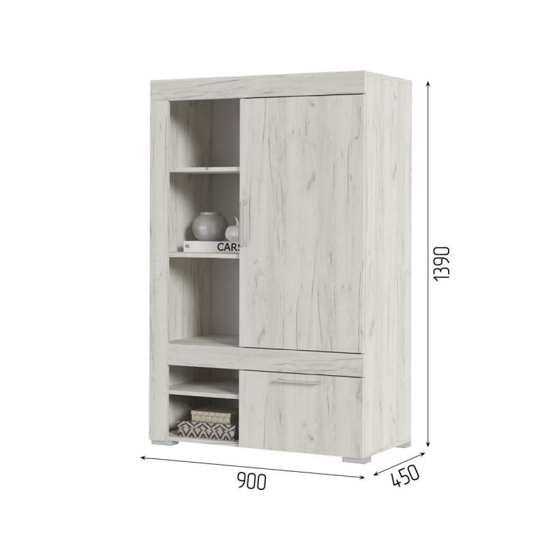Шкаф «Гранд» маркировки ШК-03, выполнен в современном стиле. Фасады изготовлены из ДСтП, облицованного ламинированной пленкой, в цвете Дуб крафт белый. Каркас шкафа, также имеет цвет Дуб крафт белый, изготовленный из ламинированного ДСтП. Материал изготовления шкафа в гостиную - экологически чистый и гипоаллергенный, без химических добавок, устойчив к грибкам и микроорганизмам. Задняя стенка из плиты ХДФ – прочный, долговечный и экологичный материал. экологически безопасных и надежных материалов Реальный цвет товара может незначительно отличаться от изображения на экране.