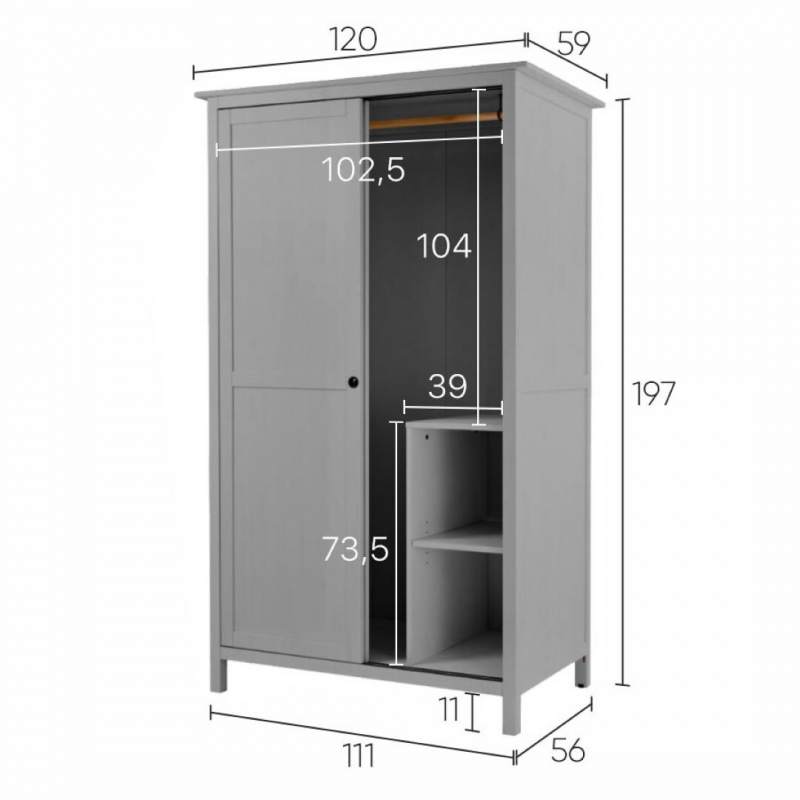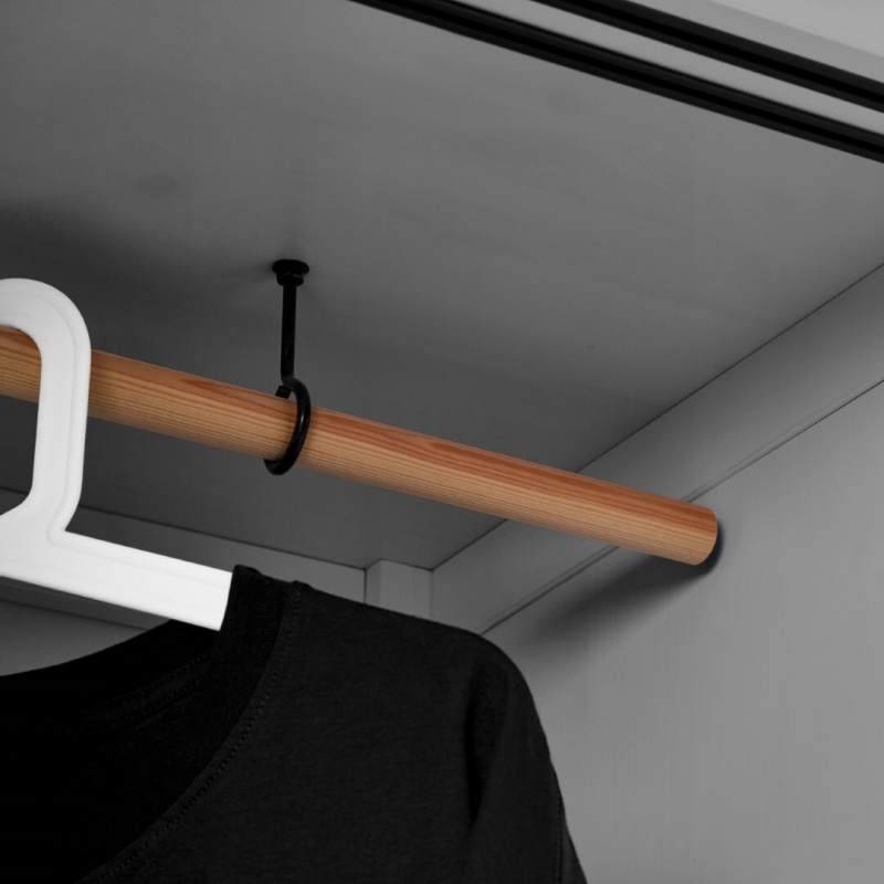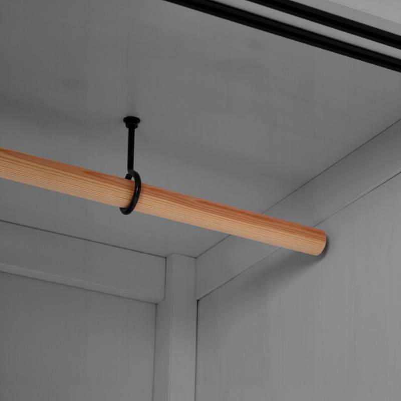 Деревянная штанга по всей ширине шкафа. - Регулируемые опоры: Позволяют легко компенсировать неровности пола.