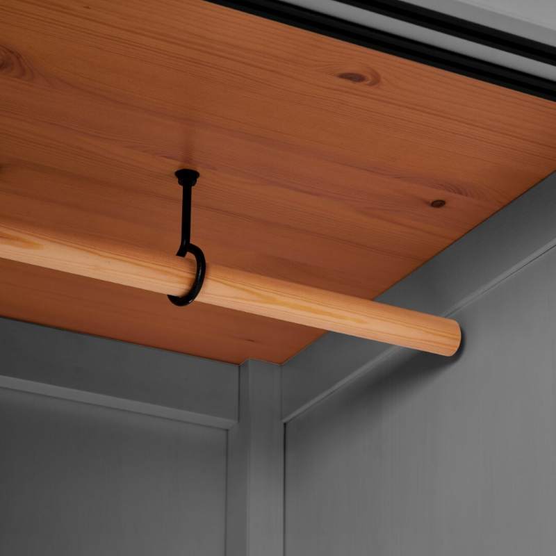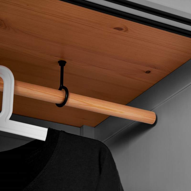 Деревянная штанга по всей ширине шкафа. - Регулируемые опоры: Позволяют легко компенсировать неровности пола.