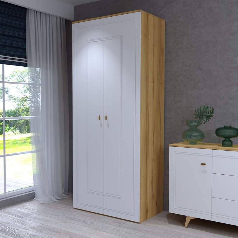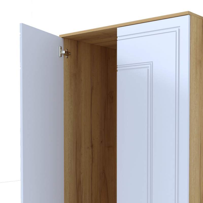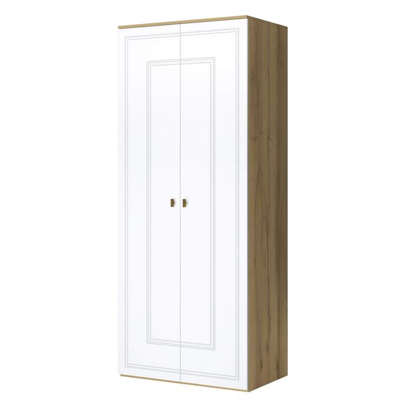 Шкаф распашной Вега Сапфир – стильное и функциональное решение для современной спальни. Сочетание строгих линий, сдержанного декора и яркое цветовое оформление делают образ шкафа невероятно эффектным.Шкаф для одежды выпускается в двух исполнениях: дуб золотистый + синий софт; дуб золотистый + глянец белый. Поверхность фасадов в синем исполнении – невероятно приятная на ощупь с эффектом soft touch. Глубокий синий цвет станет украшением интерьера спальни. Шкаф в белом исполнении с белыми глянцевыми фасадами добавит интерьеру света и тепла.Шкаф для одежды оснащен штангой для вертикального хранения одежды и широкими полками для обуви, головных уборов и прочих вещей. Шкаф в гостиную оснащен надежной фурнитурой, что служит гарантией долгой службы мебели. Петли с доводчиками обеспечивают плавное и бесшумное закрывание дверок шкафа двухдверного.