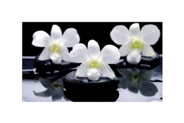 Столешница раскладная, фотопечать орхидея на черных камнях, в разложенном состоянии 900 х 1200 мм. ЛДСП + закаленное стекло.