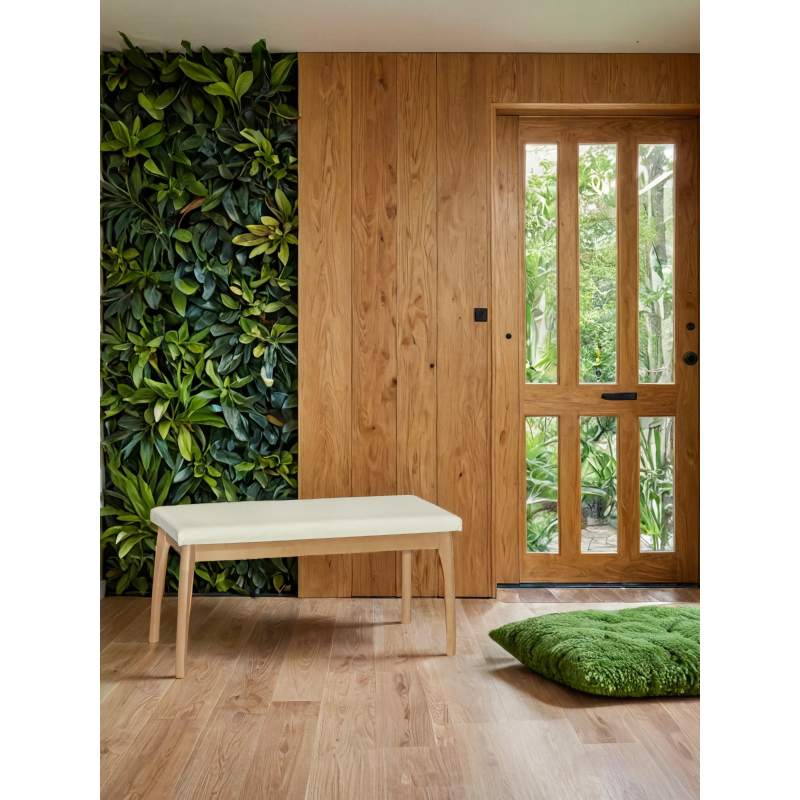 Скамья для прихожей мягкая, экокожа крем, каркас бук
