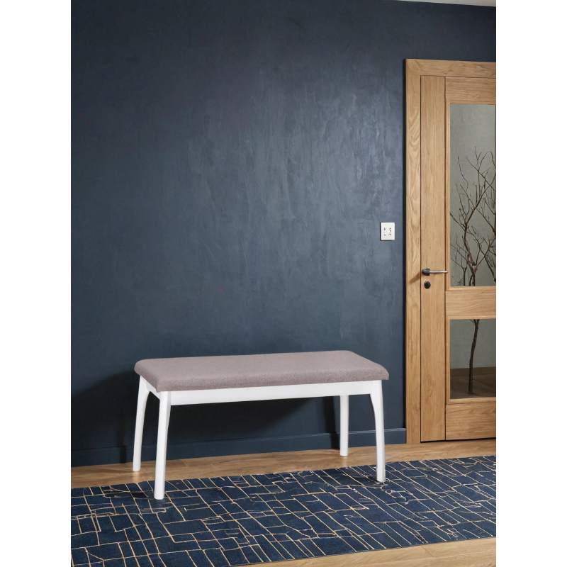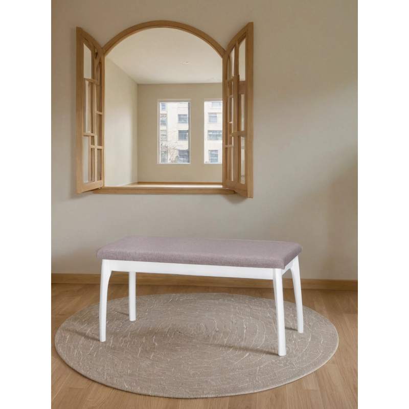 Скамья для прихожей мягкая, ткань серо-розовый, каркас снег