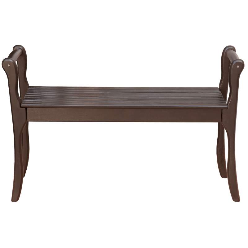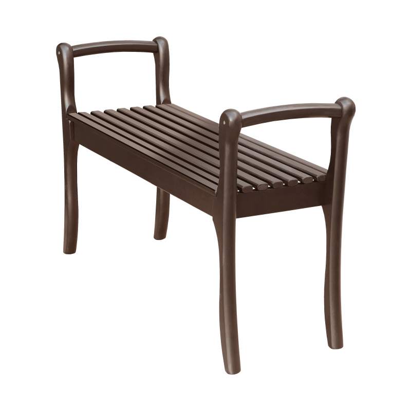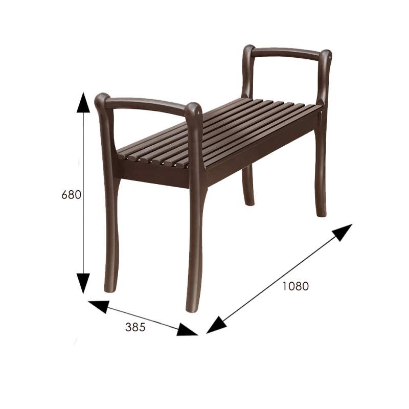 Традиционная метровая скамья в прихожую в квартиру, или на дачу с подлокотниками. Без мягкой подушки, с классическими ламелями. Каркас из натурального массива легкий и прочный, поддается реставрации подручными средствами. Подлокотники делают скамью более комфортной при сидении, позволяют легко переносить её с места на место, и придают внешнему виду законченность и основательность. Скамья поставляется в разобранном виде, её легко перевезти и собрать. Три варианта цвета отделки позволяют сделать выбор, наиболее подходящий в вашу обстановку.