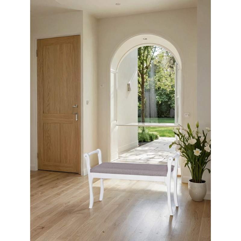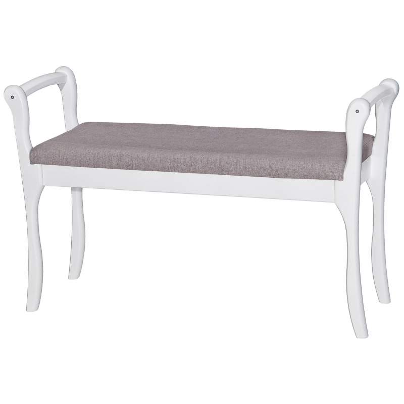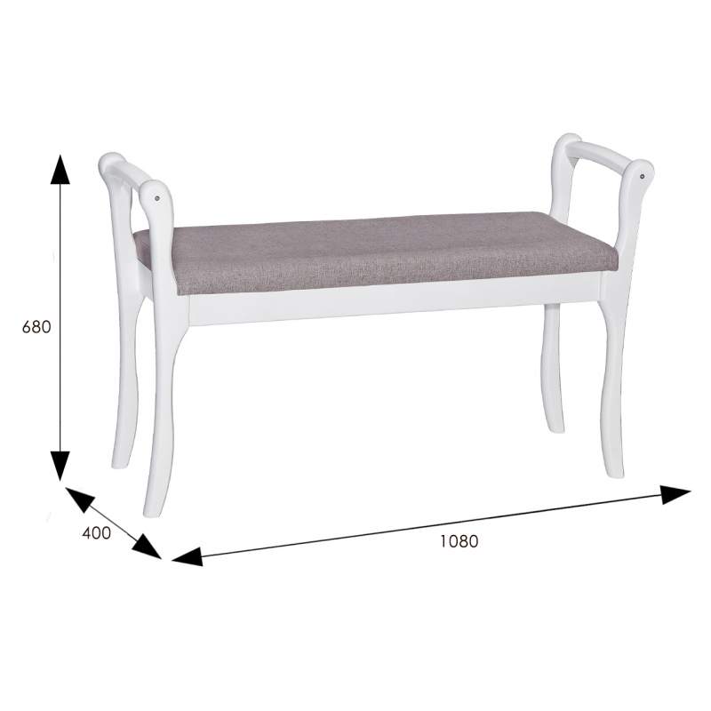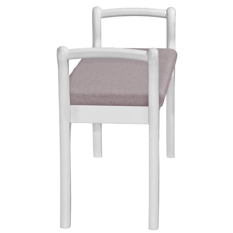 Скамья для прихожей с подлокотниками мягкая, ткань серо-розовый, каркас снег
