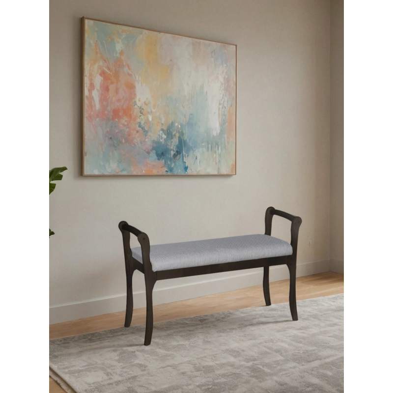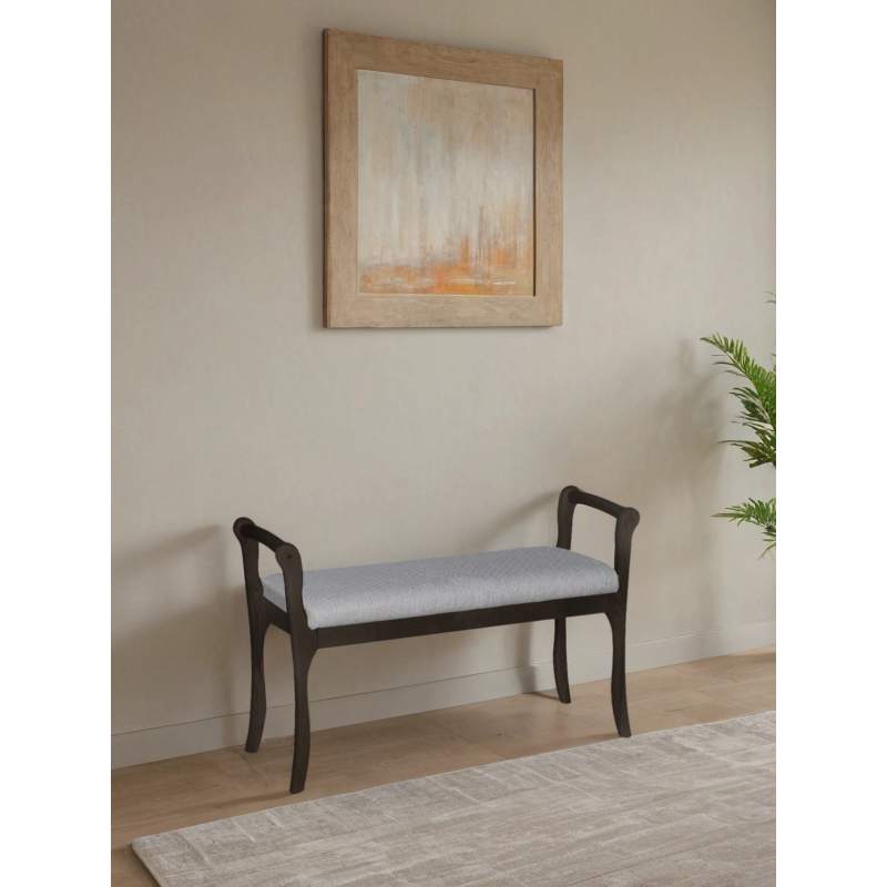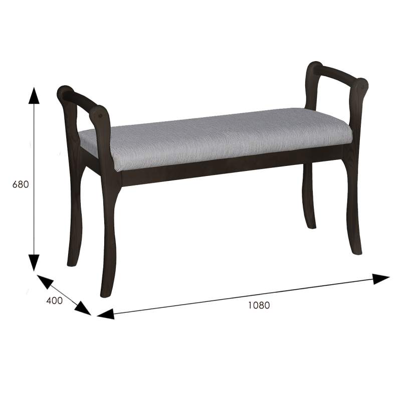 Скамья для прихожей с подлокотниками мягкая, ткань серый, каркас венге