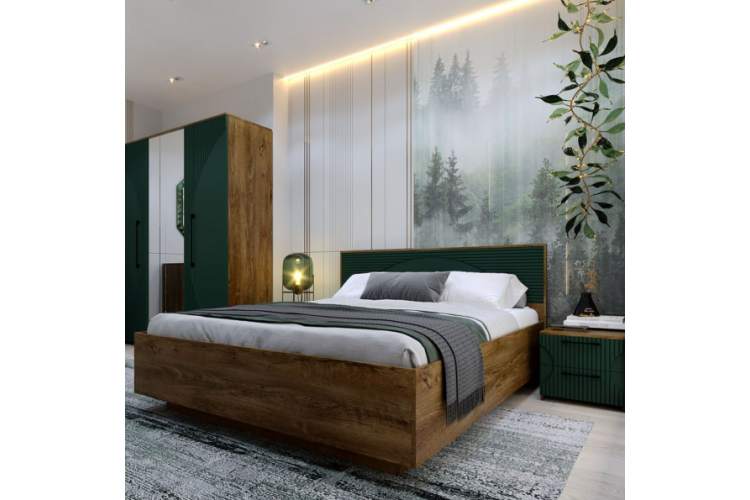 Спальня «Монтале» КМК 0966, дуб канзас/зеленый матовый