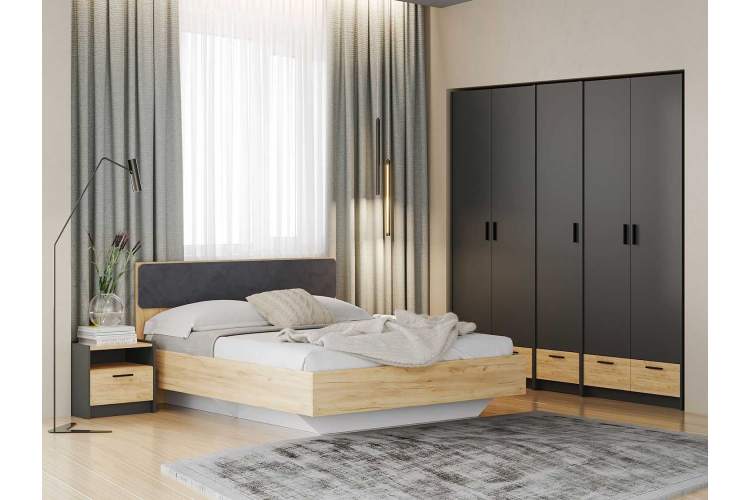 Спальня Оттавия 5 Антрацит / Дуб золотой - вместительный и комфортный набор для современной спальной комнаты.
