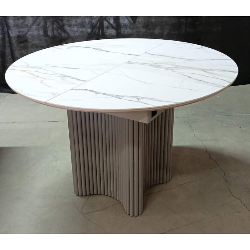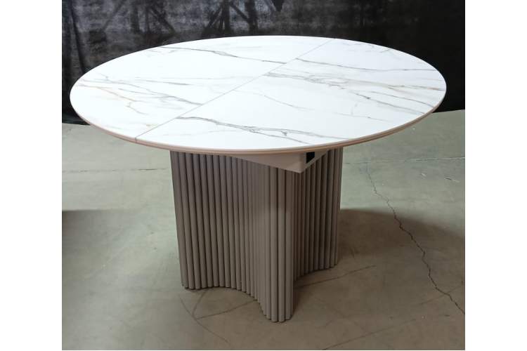 Стол АДАЖИО 115 КРУГЛЫЙ GILT WHITE, керамика / Латте каркас М-City