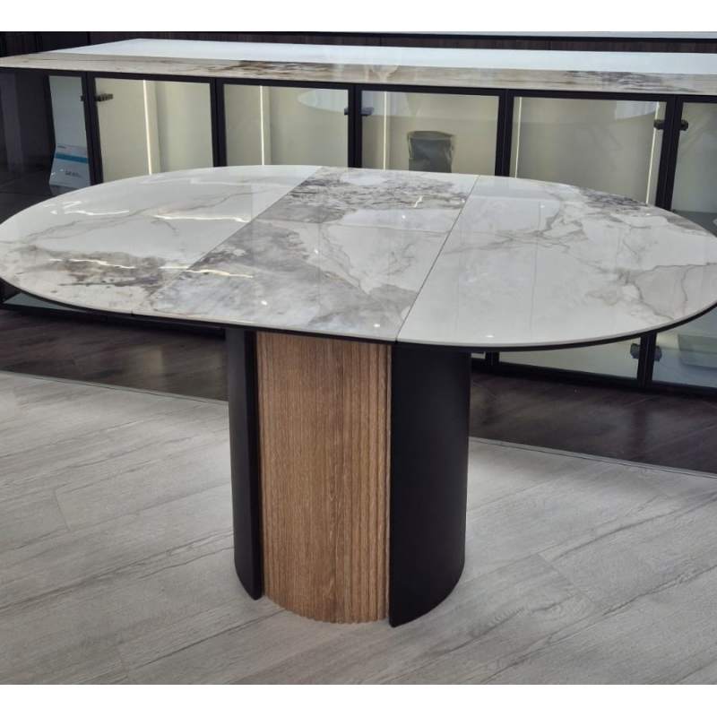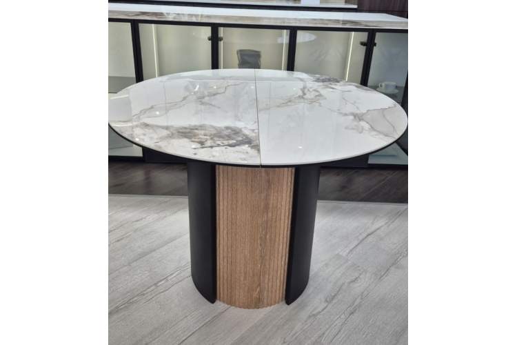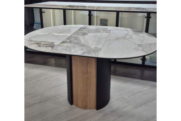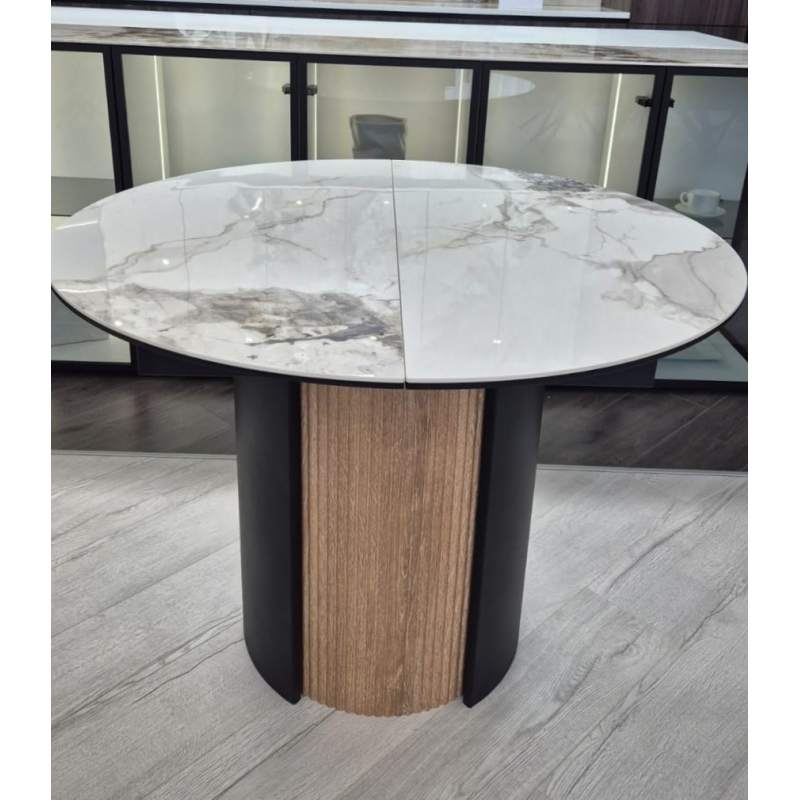 Стол БАТИСТ 115 с подстветкой PANDORA LIGHT, керамика / ДУБ АМЕРИКАНСКИЙ, ЧЕРНЫЙ каркас М-City