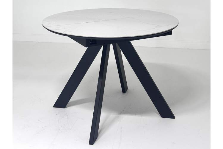 Стол БОНЖУР 100 БЕЛЫЙ МРАМОР, керамика / ЧЕРНЫЙ каркас М-City