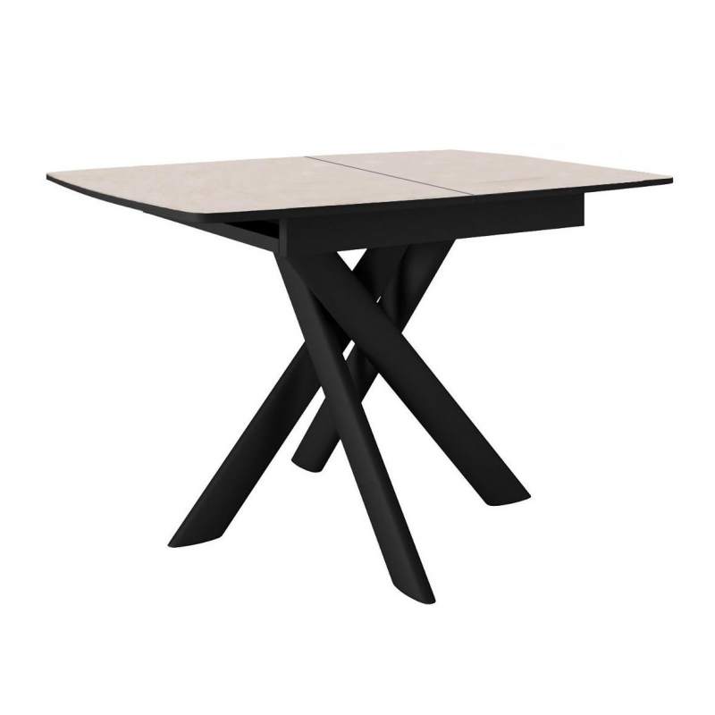 Стол DikLine DKB110, Керамика Krater Perla (бежевый матовый)/подстолье черное/опоры черные