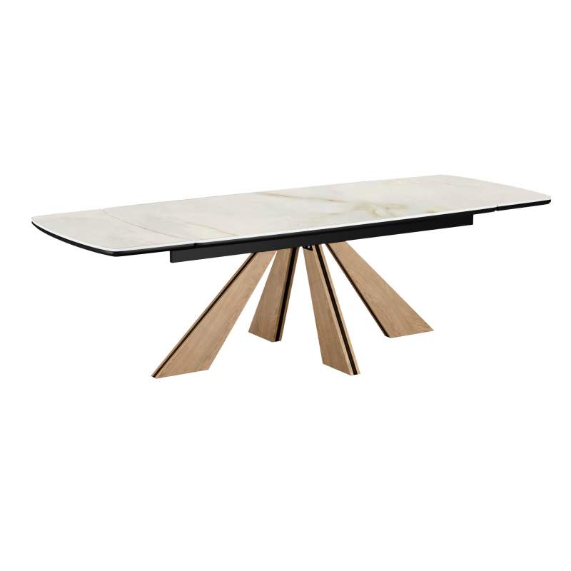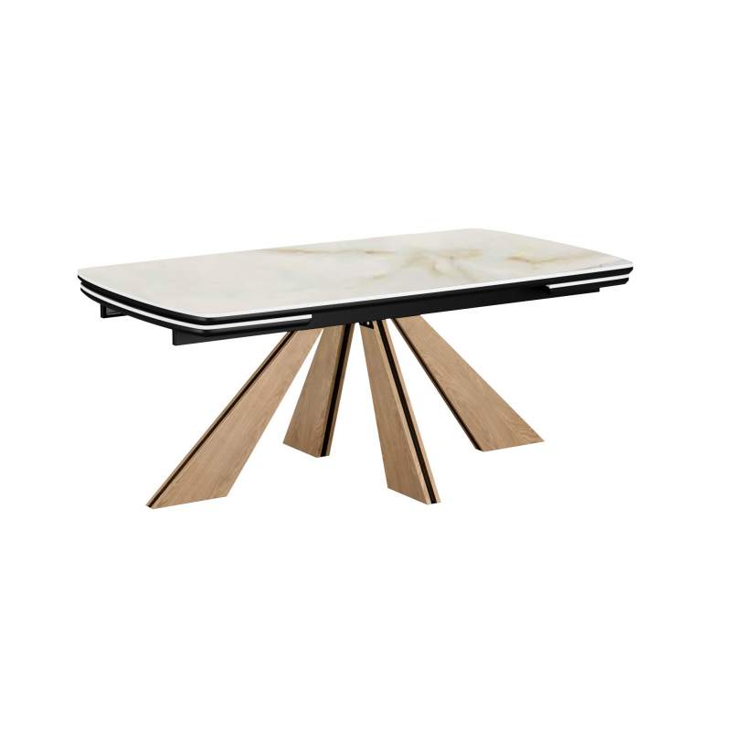 Стол DikLine DKP180 Керамика Ostra Bianco (мрамор глянец белый)/подстолье черное/опоры галифакс (2 уп.)