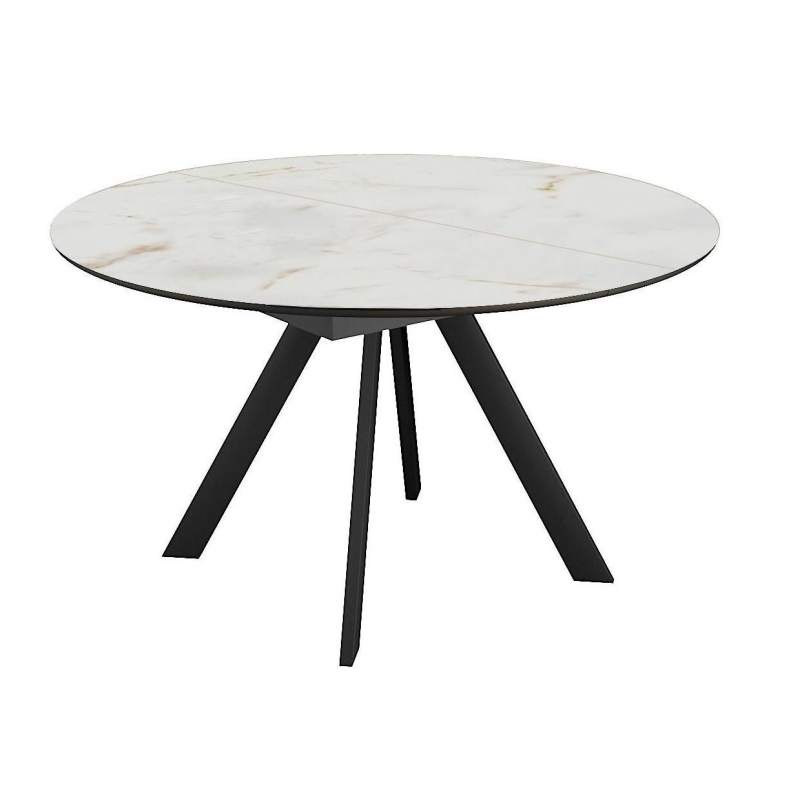 Стол DikLine SKC120 d1200 Керамика глянец Ostra Bianco (мрамор глянец белый)/подстолье черное/опоры черные