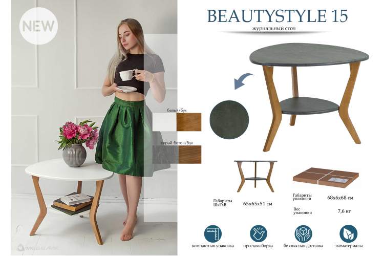 Приобрести Стол журнальный BeautyStyle 15 серый бетон/бук в интернет-магазине недорого по цене 8795р.. Нажав кнопку ХОЧУ СКИДКУ - оператор предложит лучшую цену если это возможно. Доставка в Москве и области со сборкой сразу. Отправляем в регионы России. Для заказа Стол журнальный BeautyStyle 15 серый бетон/бук 007836-09 007836 звоните по телефону: +7(495)642-45-92. Посмотреть Стол журнальный BeautyStyle 15 серый бетон/бук от mebelik можно в каталоге.