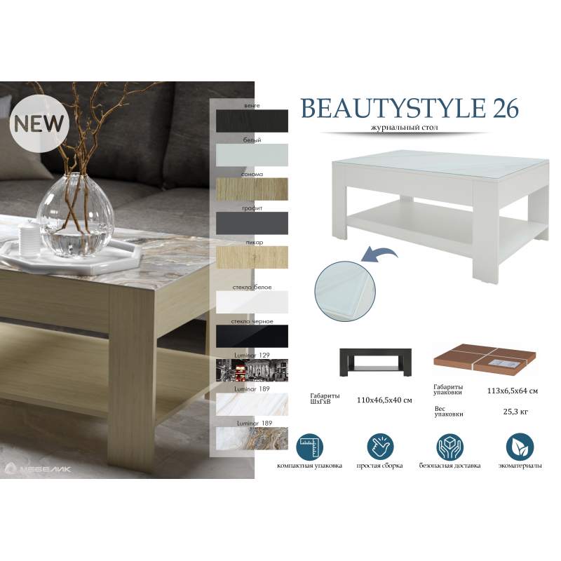 Стол журнальный Beauty Style 26 вполне может выполнять функцию рабочего стола современного творческого человека. При его внушительных размерах 60*110см только высота в 46см его отличает от полноценного письменного стола. Кроме большой рабочей поверхности, у стола есть удобная очень вместительная полка для книг, журналов, гаджетов, прочих мелочей. На таком столе можно легко сервировать завтрак, или легкий ужин. Этот стол будет уместен в гостиной, оформленной в современном строгом стиле.___