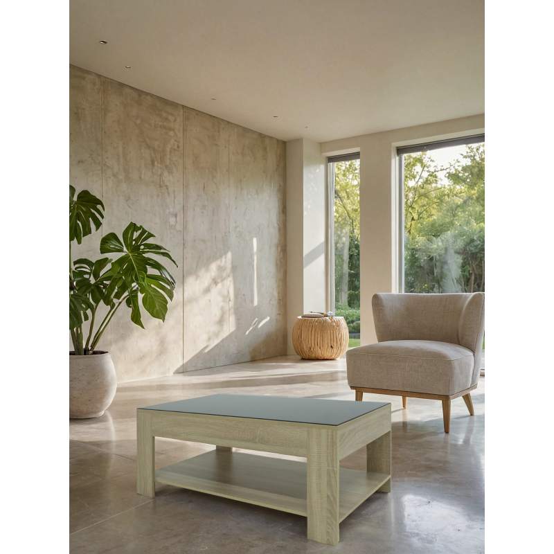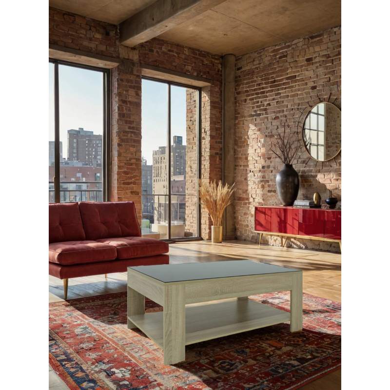 Стол журнальный BeautyStyle 26 сонома/стекло черное