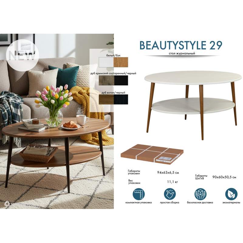 Журнальный стол BeautyStyle 29 будет идеальным дополнением для Вашего дома или квартиры. Полочка и столешница выполнены из МДФ, обеспечивая долгий срок службы. Устойчивые ножки изготовлены из массива бука, гарантирующего прочность конструкции. Влагостойкое покрытие защитит стол от повреждений и сохранит первозданный вид на протяжении многих лет.