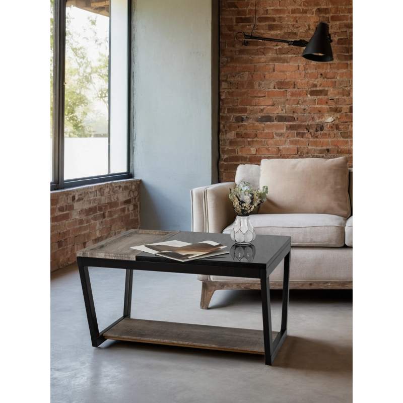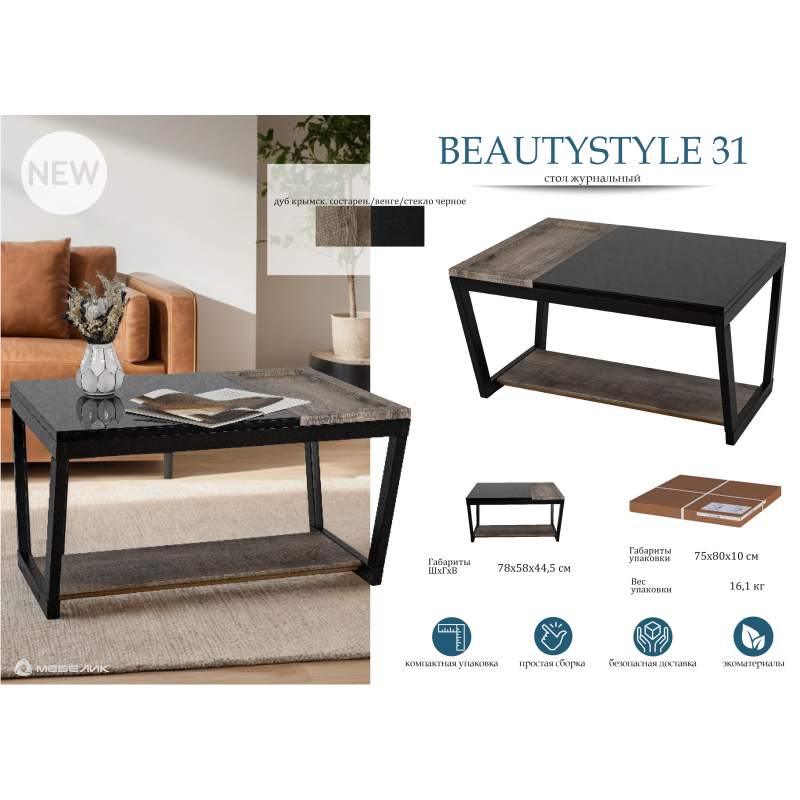Стол журнальный BeautyStyle 31 дуб крымский состаренный/венге/стекло черное