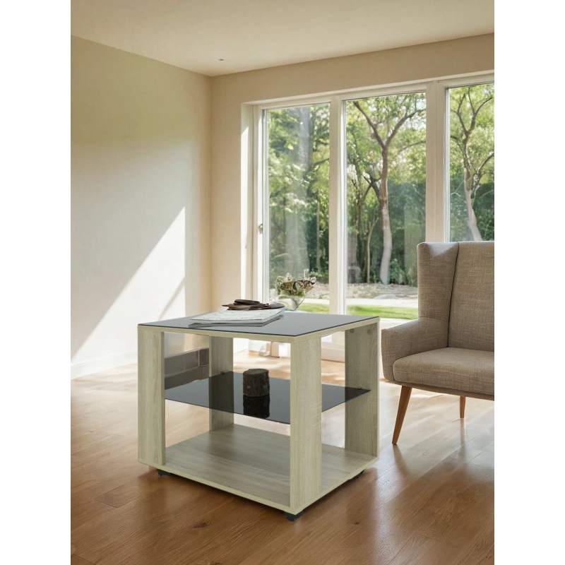 Стол журнальный BeautyStyle 5 сонома/стекло черное